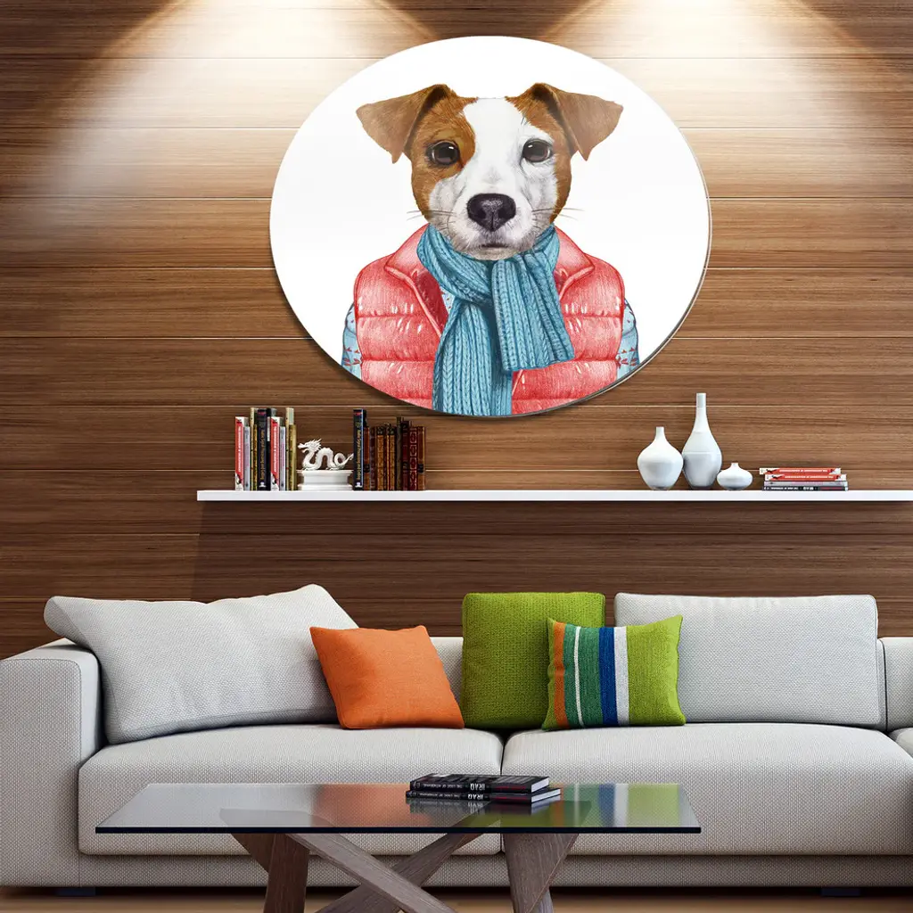 Bring Contemporary Abstraction to your home with this large Circle Metal wall art. This Funny Jack Russell in Formal Suit Metal Artwork makes it the focal point of any room or office. - White Gloss Coating ensures colors are extra vibrant with light reflection.- Aluminum grade Sheet Metal with 1 inch mounting frame on the back giving the illusion that the artwork is floating on the wall..- Mounting Brackets are included along with instructions.- High Quality Digital images are created directly into a glossy aluminum panel producing a stunning and captivating print into the glossy finish of the metal.- Water, Fire and Scratch resistant HD Aluminum panels.- Looks better than any photo paper and guaranteed to last at least 20 years- Easy to clean with a microfiber cloth. Colors are far superior to regular Canvas Art. - Easy to Hang