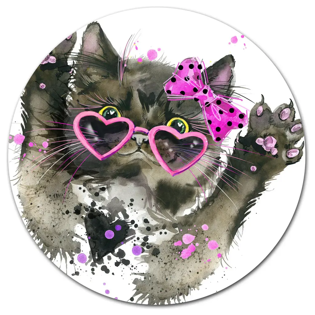 Funny Leopard With Heart Glasses, Animal Round Wall Art, 11"