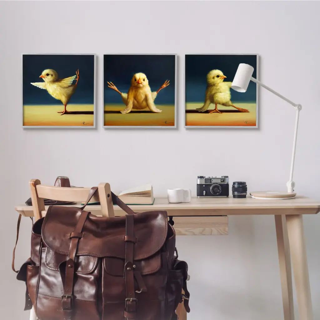 Funny Yoga Chick Trio Farm Birds Stretching Poses, 3Pc, Each 17 X 17