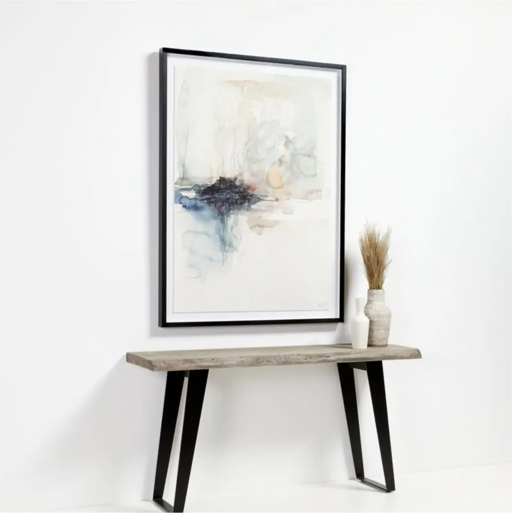 A sense of nostalgia and the solitude of the woods permeate Beverly Fuller's sensitively rendered watercolor painting. Recalling the graying sky and last rays of a setting sun, she recorded the colors and mood of the moment with delicate pencil marks and pale washes. Our large giclee print faithfully reproduces all the detail and nuance of the acrylic original. A slim matte black frame and a single white mat put the focus on this extraordinary image.Beverly Fuller holds a bachelor of arts degree from Whittier College and a master of arts from California State University in Los Angeles. After completing her education, she engaged in a creative journey around the U.S. that inspired her to become a full-time painter. Fuller lives and works in Northern California.