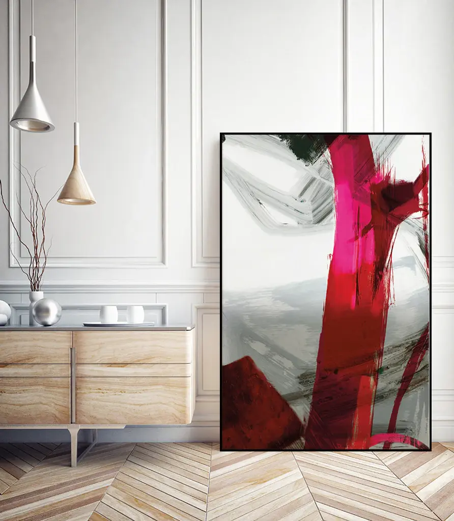 Your ready to hang artwork is printed on canvas then stretched and mounted to a 2-inch thick - hand stained black wood frame. Arrives at your door complete with an easy to use self-leveling hangking kit.