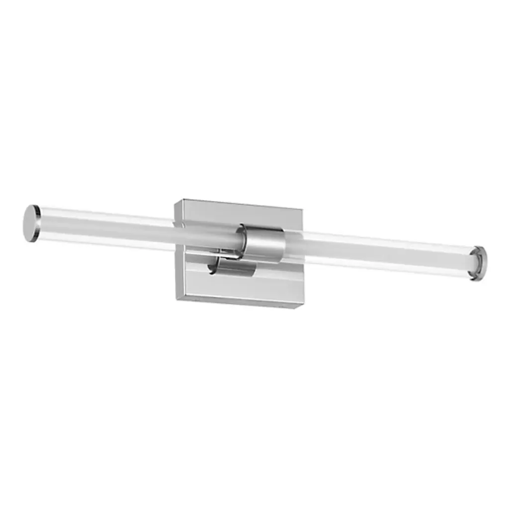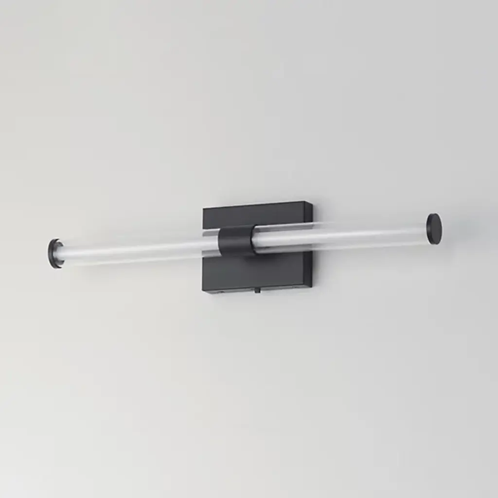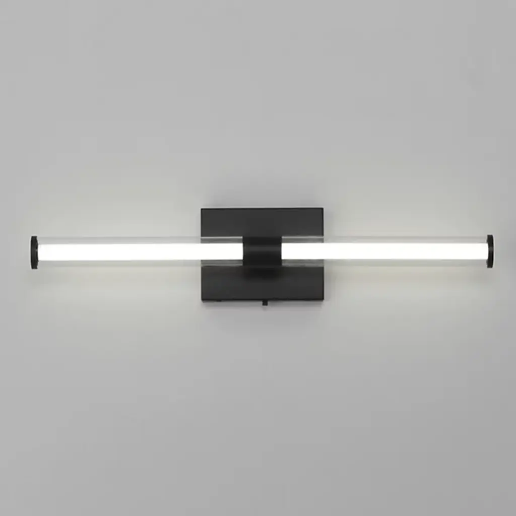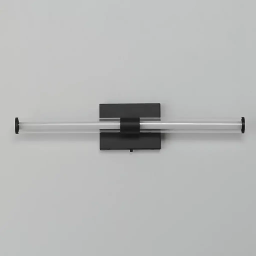 The Fuse LED Vanity Light from ET2 Lighting offers luminous elegance, where innovation meets sophistication. A white cylindrical tube of LED light extends in two directions within the clear glass void, providing evenly distributed light. This sconce offers adjustable color temperatures, ranging from warm 2700K to cool 5000K, with neutral options in between. Ideal for bathrooms and corridors, its sleek design and ADA compliance make it a perfect blend of style and functionality. Illuminate your space with the versatile brilliance of the Lume LED Wall Sconce.