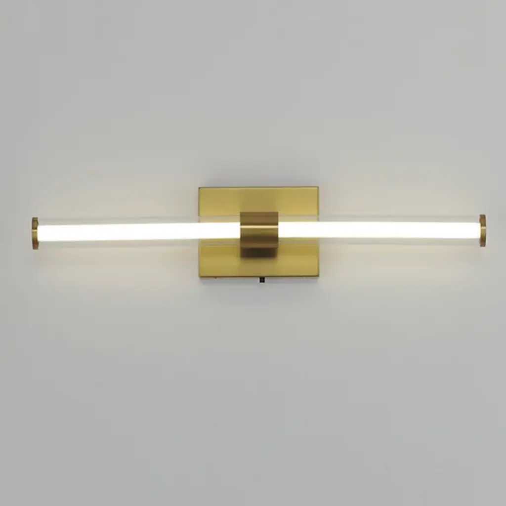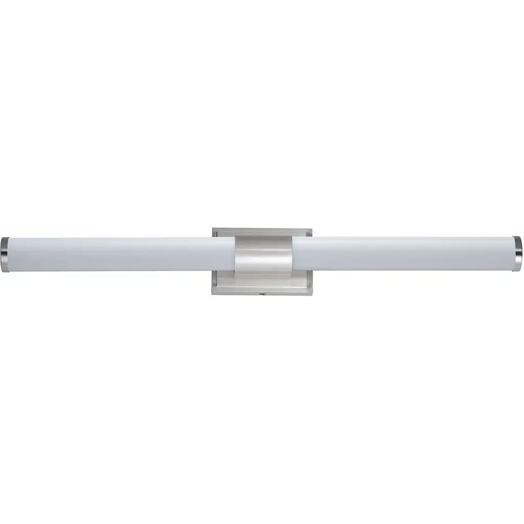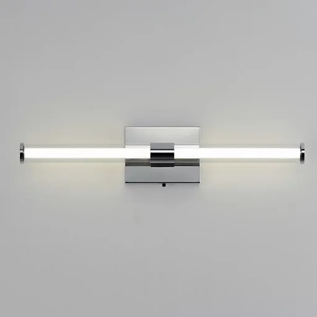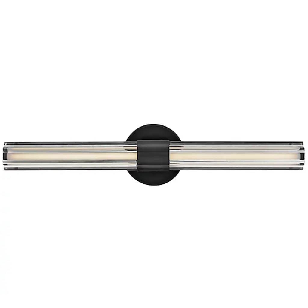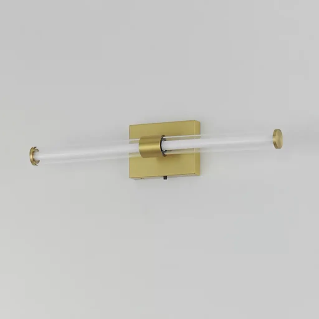 The Fuse LED Vanity Light from ET2 Lighting offers luminous elegance, where innovation meets sophistication. A white cylindrical tube of LED light extends in two directions within the clear glass void, providing evenly distributed light. This sconce offers adjustable color temperatures, ranging from warm 2700K to cool 5000K, with neutral options in between. Ideal for bathrooms and corridors, its sleek design and ADA compliance make it a perfect blend of style and functionality. Illuminate your space with the versatile brilliance of the Lume LED Wall Sconce.