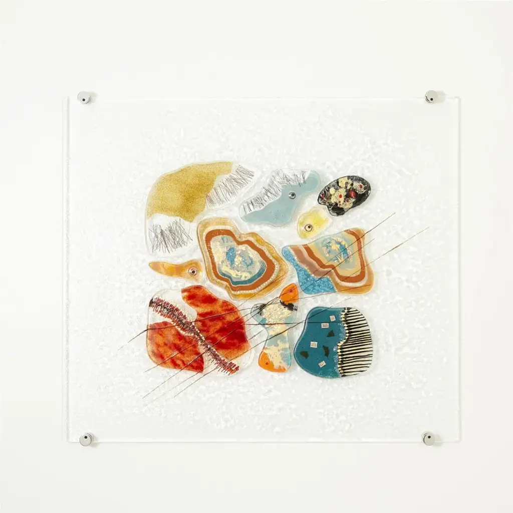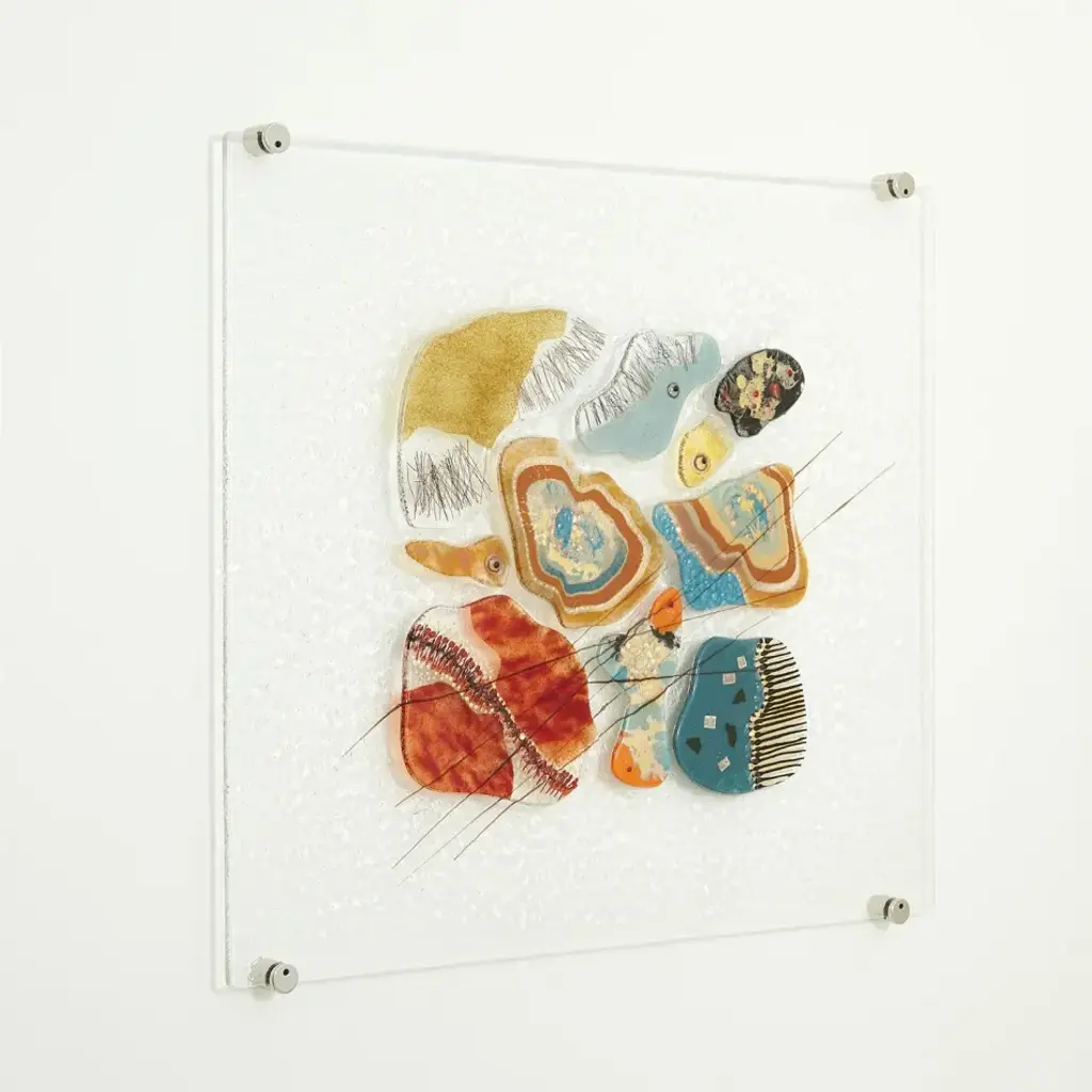 Portuguese artisans craft the Fused Glass Wall Panel by mixing granulated glass and paint to create an extraordinary design on cast glass. Held in place by stainless steel mounting hardware allowing panels to be displayed in four directions. Feature individually or in a set to create the ultimate statement wall. From a fashion forward perspective, Global Views offers accessories, furniture, statement lighting, and an assortment of rugs and mirrors to add beauty and joy to your home.