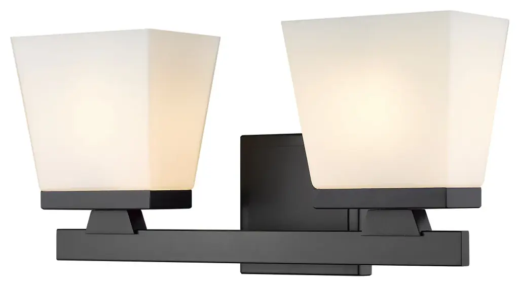 Fusion 2 Light 15.5 Inch Dark Bronze Vanity Light Wall Light In Rectangle, Incandescent, Opal Fusion