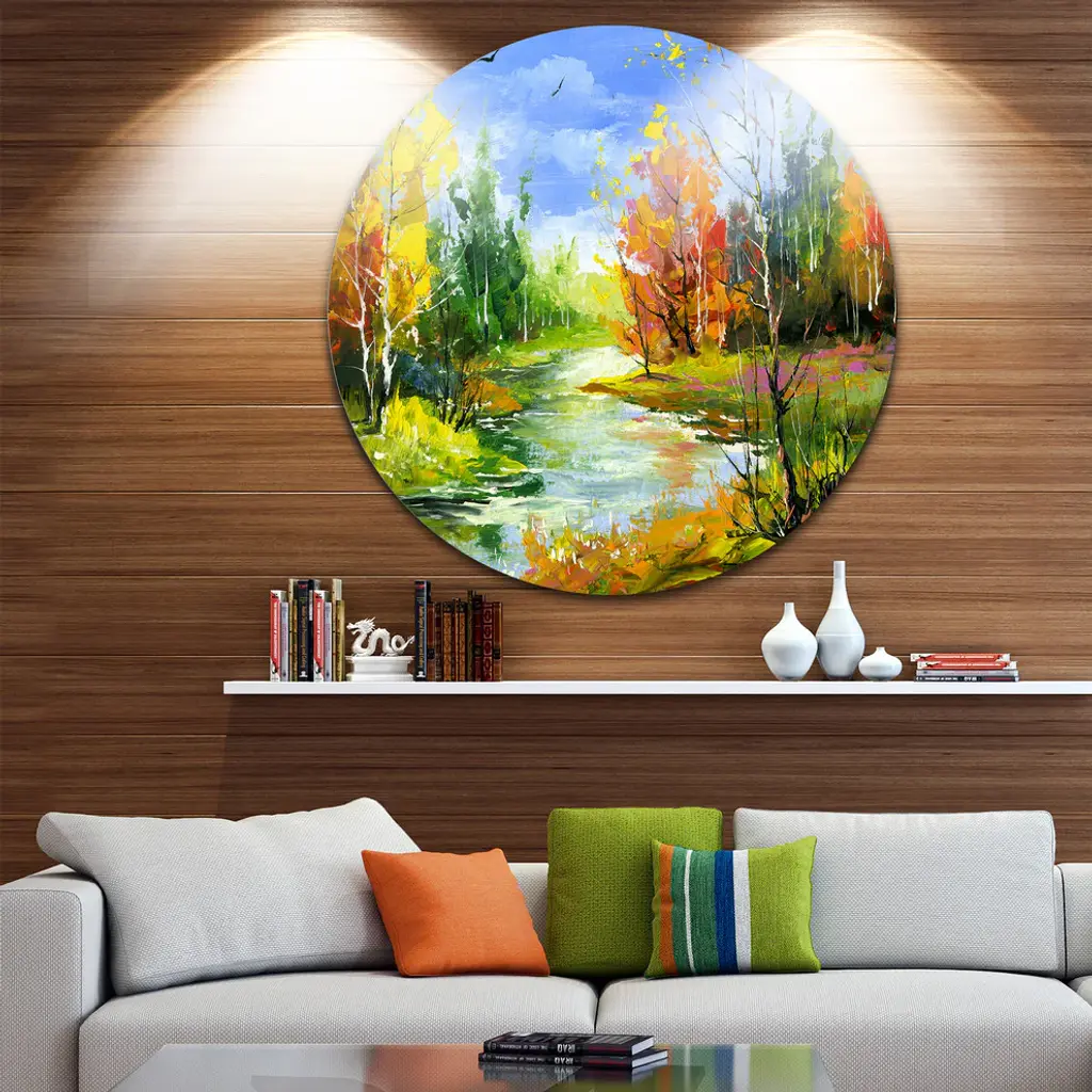 Fusion Of Autumn Shades, Landscape Round Wall Art, 36"