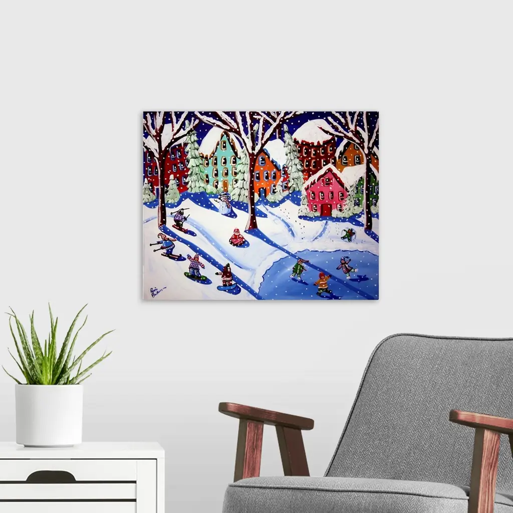This painting is recognizing all the kids who love winter sports and dream of going to the Olympics someday, doing what they love to do.