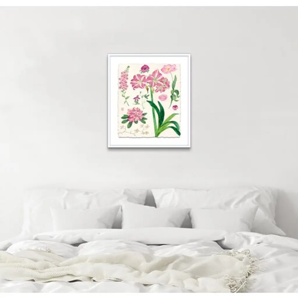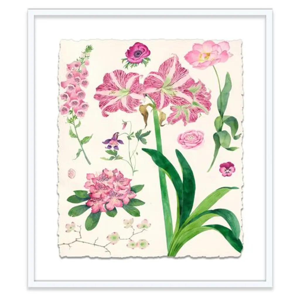 Seen first at One Kings Lane: This floral work from Gabby Malpas brings any wall to life with its vibrant composition and impressive detail. Printed on watercolor paper with deckled edges, floated over a mat, and displayed in a simple pine frame, this piece arrives ready to hang.Gabby Malpas creates joyful, intricate watercolor works. Locally grown flowers and fruits picked nearby are rendered with tender warmth, often borrowing from the delicate aesthetics of Chinese ceramics and Southeast Asian batik fabrics. She works on high-quality art paper which she sometimes stitches together to add texture. Gabby trained as a ceramicist in New Zealand and has lived for many years in the UK. She now resides in Sydney, Australia.