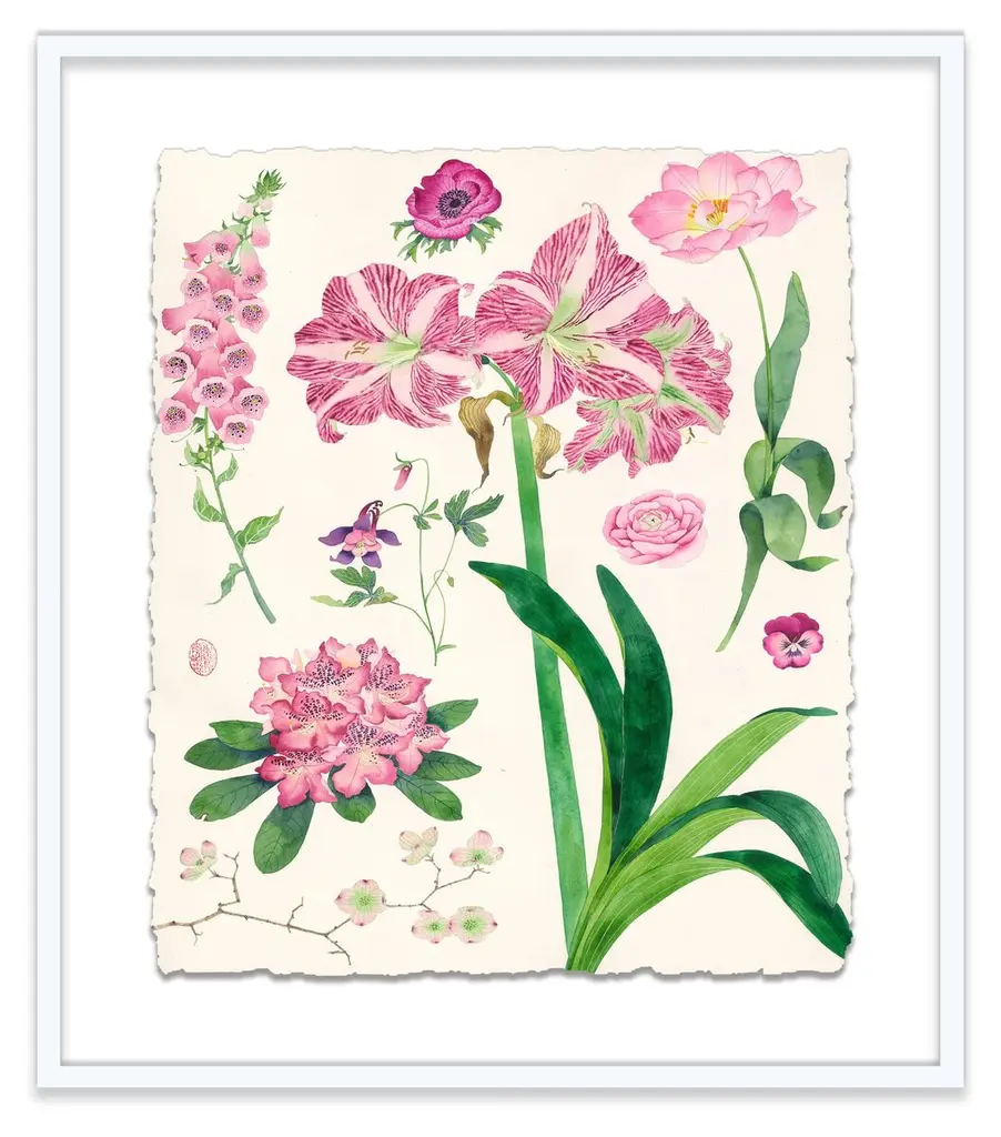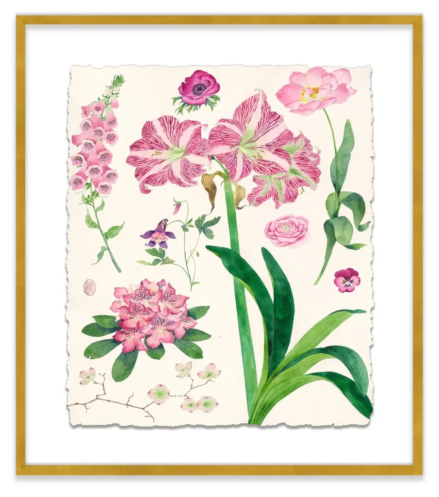 Seen first at One Kings Lane: This floral work from Gabby Malpas brings any wall to life with its vibrant composition and impressive detail. Printed on watercolor paper with deckled edges, floated over a mat, and displayed in a simple pine frame, this piece arrives ready to hang.Gabby Malpas creates joyful, intricate watercolor works. Locally grown flowers and fruits picked nearby are rendered with tender warmth, often borrowing from the delicate aesthetics of Chinese ceramics and Southeast Asian batik fabrics. She works on high-quality art paper which she sometimes stitches together to add texture. Gabby trained as a ceramicist in New Zealand and has lived for many years in the UK. She now resides in Sydney, Australia.