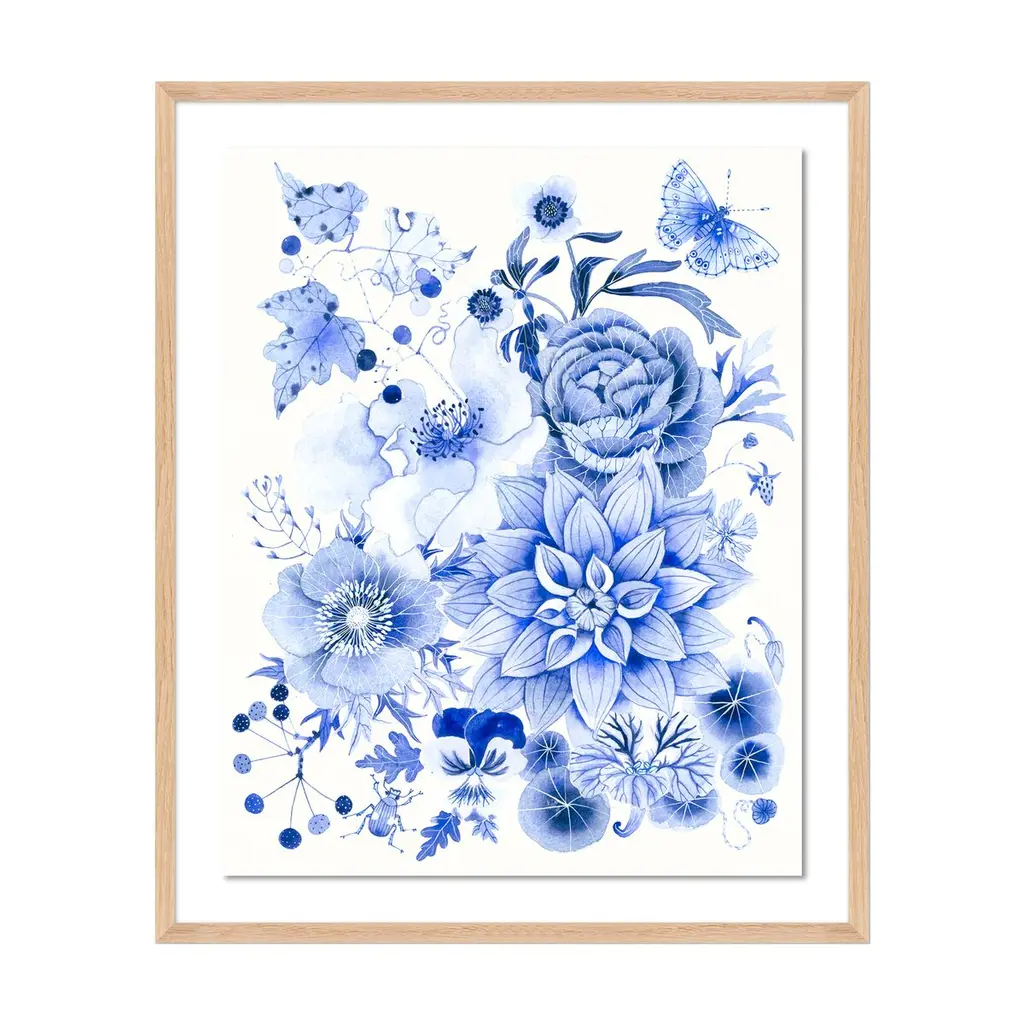 This work from Gabby Malpas brings any wall to life with its vibrant florals and detailed porcelain vessels. Printed on high-quality paper with deckled edges, floated over a mat, and displayed in a simple wood frame, this piece arrives ready to hang. Gabby Malpas creates joyful, intricate watercolor works. Locally grown flowers and fruits picked nearby are rendered with tender warmth, often borrowing from the delicate aesthetics of Chinese ceramics and Southeast Asian batik fabrics. She works on high-quality art paper which she sometimes stitches together to add texture. Gabby trained as a ceramicist in New Zealand and has lived for many years in the UK. She now resides in Sydney, Australia.