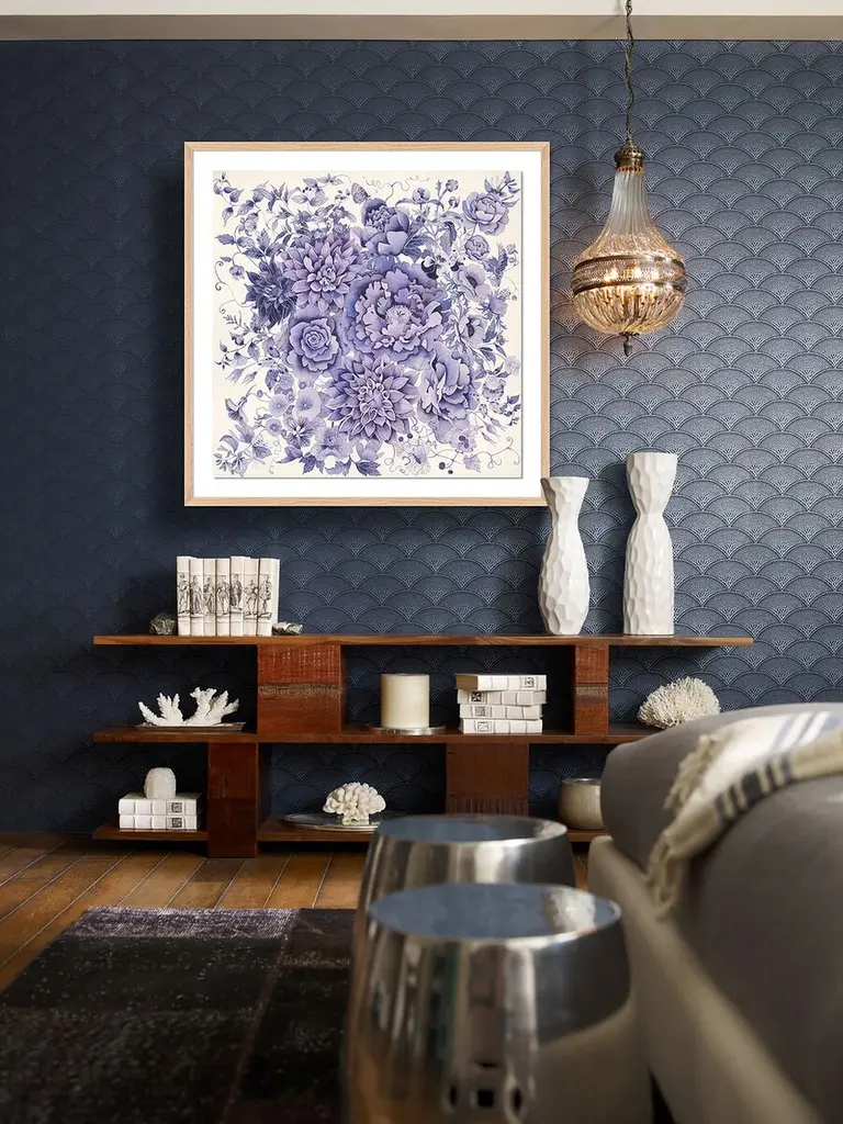 This work from Gabby Malpas brings any wall to life with its vibrant florals and detailed porcelain vessels. Printed on high-quality paper with deckled edges, floated over a mat, and displayed in a simple wood frame, this piece arrives ready to hang. Gabby Malpas creates joyful, intricate watercolor works. Locally grown flowers and fruits picked nearby are rendered with tender warmth, often borrowing from the delicate aesthetics of Chinese ceramics and Southeast Asian batik fabrics. She works on high-quality art paper which she sometimes stitches together to add texture. Gabby trained as a ceramicist in New Zealand and has lived for many years in the UK. She now resides in Sydney, Australia.