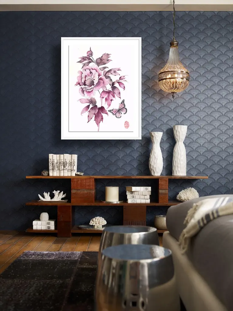 This work from Gabby Malpas brings any wall to life with its vibrant florals and detailed porcelain vessels. Printed on high-quality paper with deckled edges, floated over a mat, and displayed in a simple wood frame, this piece arrives ready to hang. Gabby Malpas creates joyful, intricate watercolor works. Locally grown flowers and fruits picked nearby are rendered with tender warmth, often borrowing from the delicate aesthetics of Chinese ceramics and Southeast Asian batik fabrics. She works on high-quality art paper which she sometimes stitches together to add texture. Gabby trained as a ceramicist in New Zealand and has lived for many years in the UK. She now resides in Sydney, Australia.