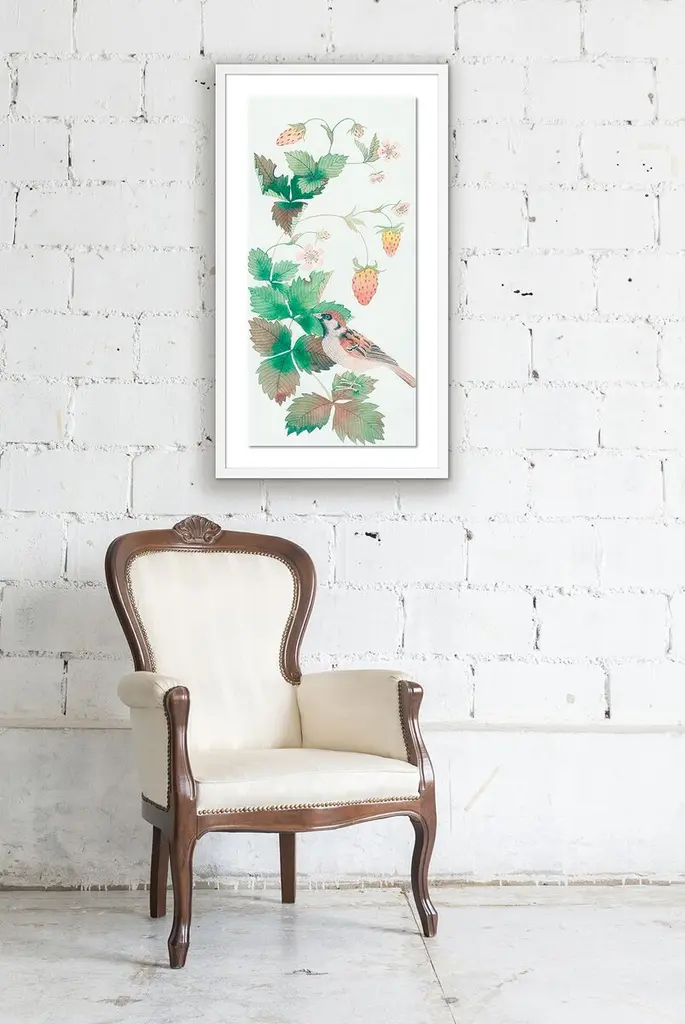 This work from Gabby Malpas brings any wall to life with its vibrant florals and detailed porcelain vessels. Printed on high-quality paper with deckled edges, floated over a mat, and displayed in a simple wood frame, this piece arrives ready to hang. Gabby Malpas creates joyful, intricate watercolor works. Locally grown flowers and fruits picked nearby are rendered with tender warmth, often borrowing from the delicate aesthetics of Chinese ceramics and Southeast Asian batik fabrics. She works on high-quality art paper which she sometimes stitches together to add texture. Gabby trained as a ceramicist in New Zealand and has lived for many years in the UK. She now resides in Sydney, Australia.