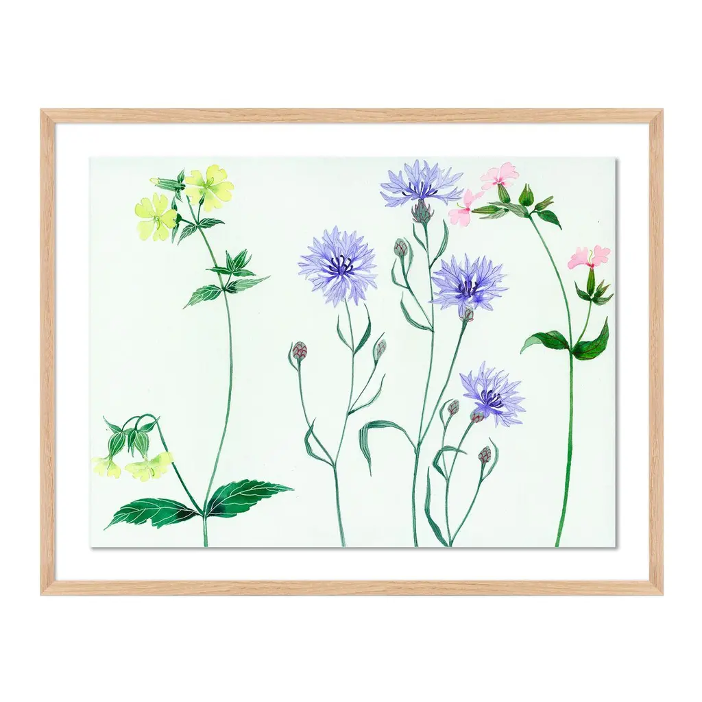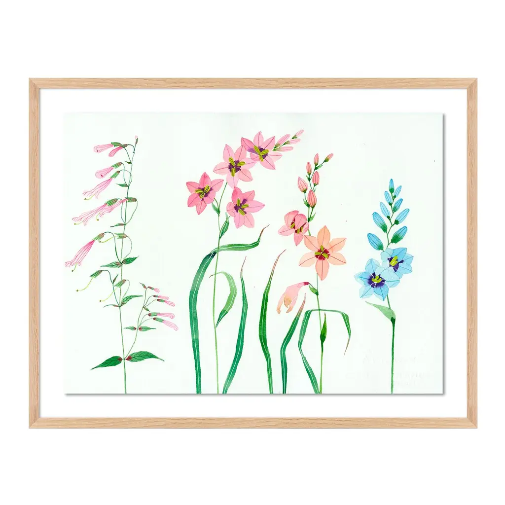 This work from Gabby Malpas brings any wall to life with its vibrant florals and detailed porcelain vessels. Printed on high-quality paper with deckled edges, floated over a mat, and displayed in a simple wood frame, this piece arrives ready to hang. Gabby Malpas creates joyful, intricate watercolor works. Locally grown flowers and fruits picked nearby are rendered with tender warmth, often borrowing from the delicate aesthetics of Chinese ceramics and Southeast Asian batik fabrics. She works on high-quality art paper which she sometimes stitches together to add texture. Gabby trained as a ceramicist in New Zealand and has lived for many years in the UK. She now resides in Sydney, Australia.
