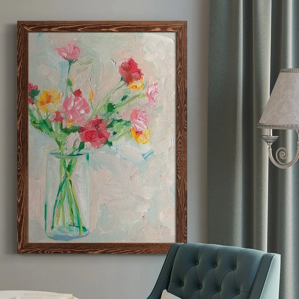 Seen first at One Kings Lane: This floral still life from Gabriela Ibarra is rendered using a mix of bold impressionist brushstrokes and pointillist dots in a gorgeous red and white palette with hints of blue. Printed on gallery-wrapped canvas with an artist-enhanced paint finish for added texture and visual interest, this piece is displayed in a beveled giltwood frame and arrives ready to hang.