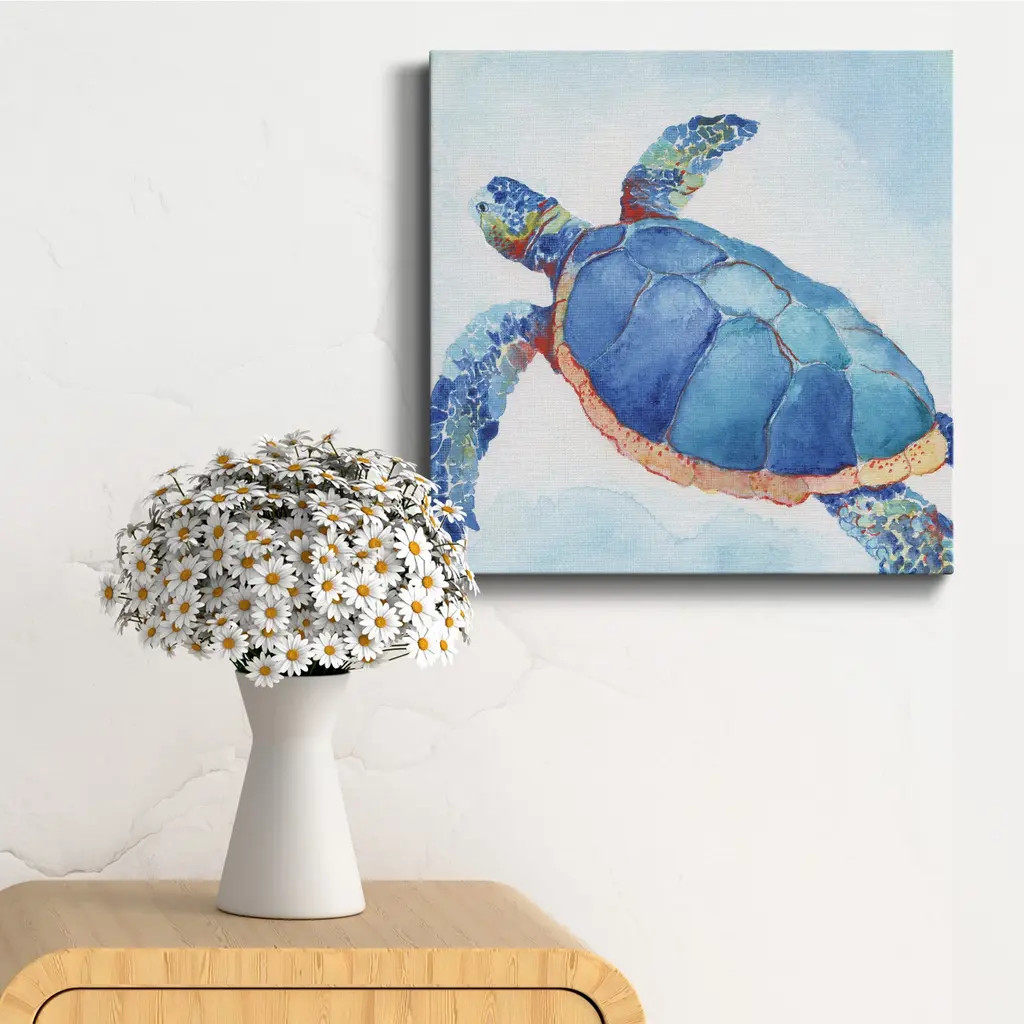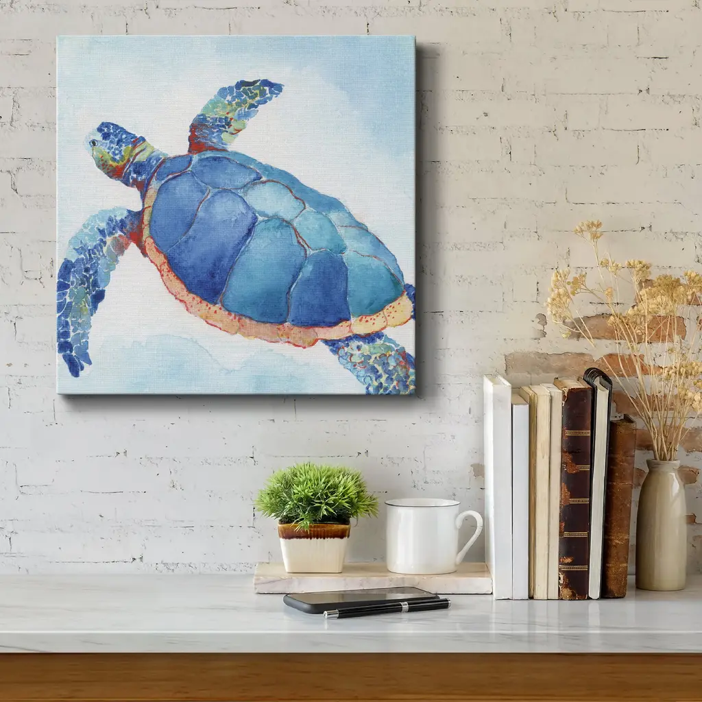 Galapagos Sea Turtle II-Premium Gallery Wrapped Canvas - Ready to Hang A premium hand stretched gallery wrapped canvas print created to last. Featuring a beveled a solid wood stretcher bar, each piece comes ready to hand 5 SIZES AVAILABLE 10''X10'' - Overall Size 16''x16'' - Overall Size 24''x24'' - Overall Size 32''x32'' - Overall Size 40''x40'' - Overall Size Each piece is made to order. Built to Last Each piece comes ready to hang Solid wood stretcher Fade and Water resistant Made domestically