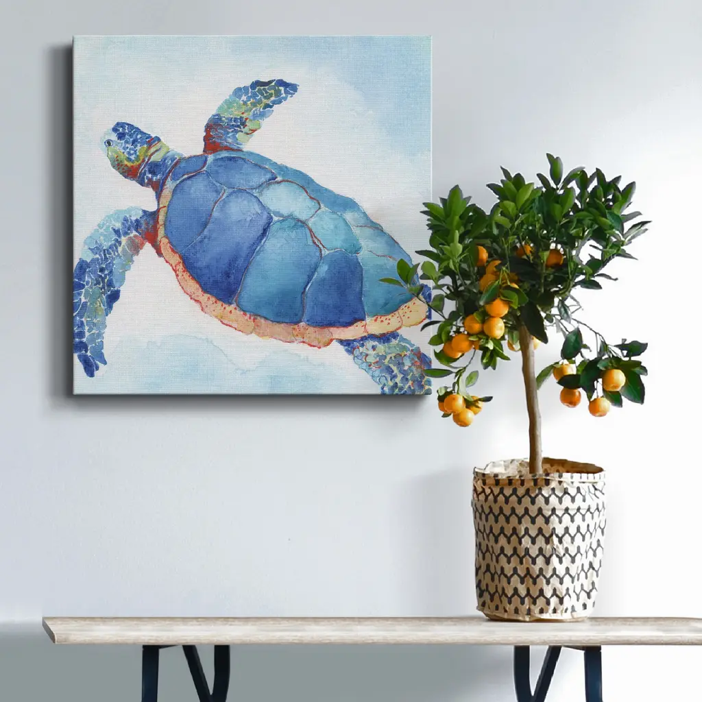 Galapagos Sea Turtle II-Premium Gallery Wrapped Canvas - Ready to Hang A premium hand stretched gallery wrapped canvas print created to last. Featuring a beveled a solid wood stretcher bar, each piece comes ready to hand 5 SIZES AVAILABLE 10''X10'' - Overall Size 16''x16'' - Overall Size 24''x24'' - Overall Size 32''x32'' - Overall Size 40''x40'' - Overall Size Each piece is made to order. Built to Last Each piece comes ready to hang Solid wood stretcher Fade and Water resistant Made domestically