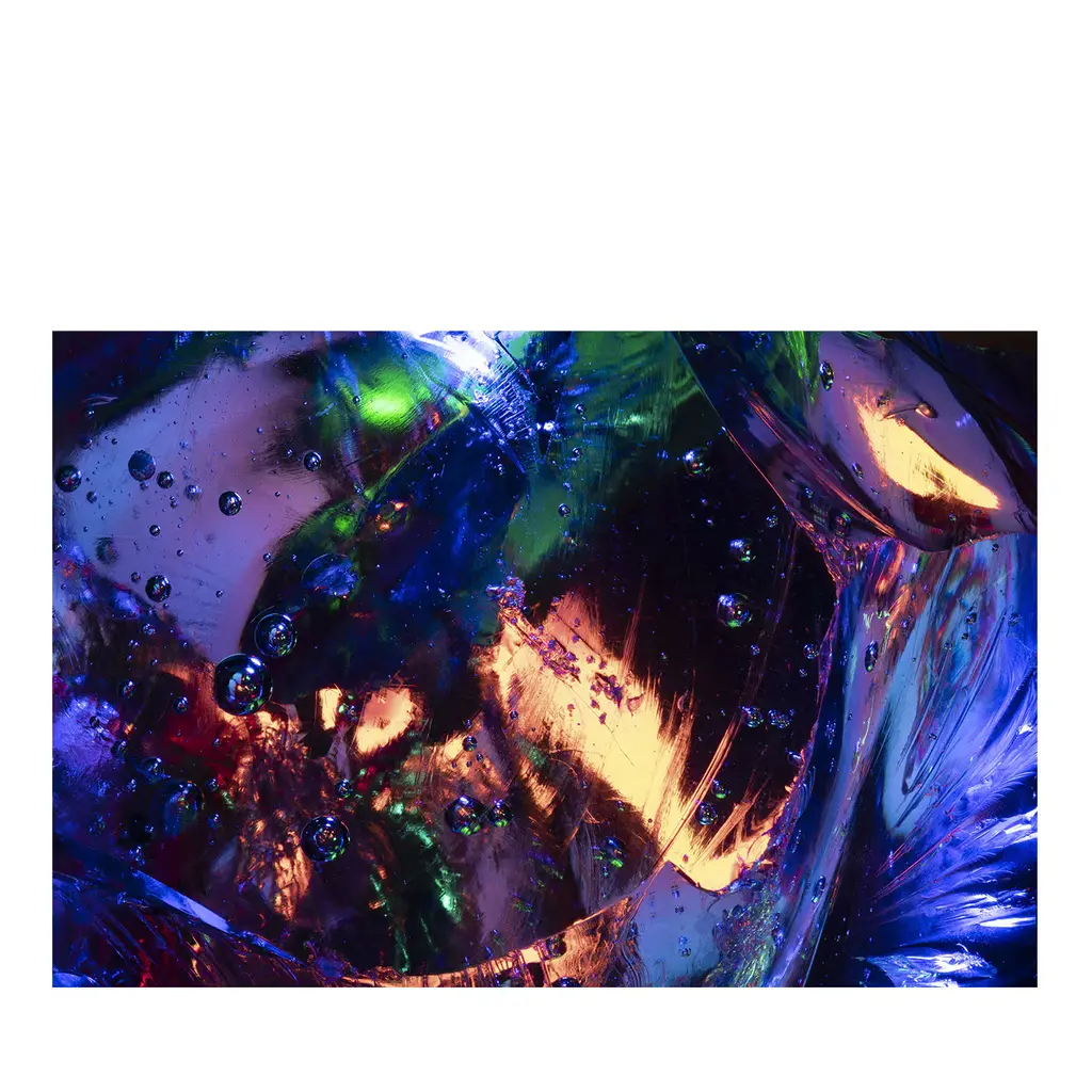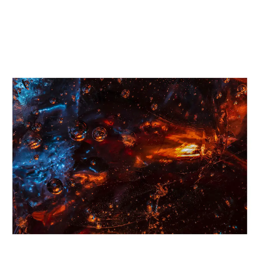 A powerful interplay of contrasting tones and flashing lights, this photograph is an abstract interpretation of our galaxy, inspired by original NASA images. A visionary work of art part of the Vitrum Spatialis project exhibited at the 2019 Biennale Arte of Venice, this photograph is masterfully developed using traditional methods and then printed with high-tech on Fuji Crystal Pearl HD paper. A shatter-proof Plexiglas (2mm-thick) layer covers and protects it, and the piece is mounted on an aluminum Dibond frame (1mm-thick, profile 0.5cm) available in a Slimline version upon request.