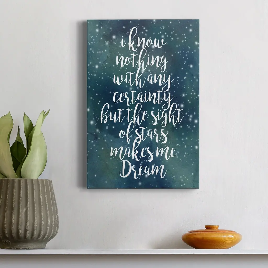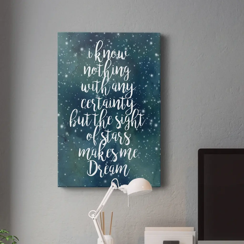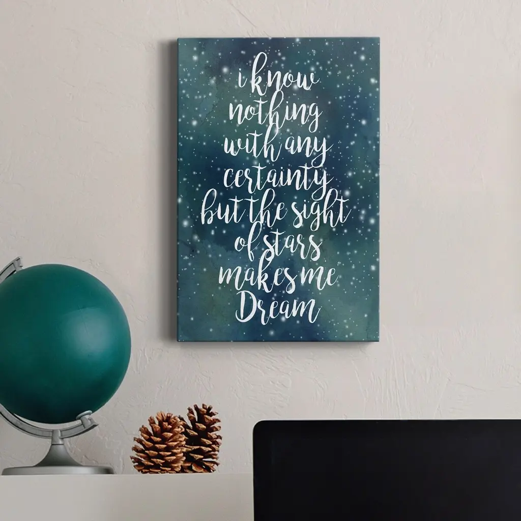 Galaxy Quote II Premium Gallery Wrapped Canvas - Ready to Hang A premium hand stretched gallery wrapped canvas print created to last. Featuring a beveled a solid wood stretcher bar, each piece comes ready to hand 6 SIZES AVAILABLE 8''X12'' - Overall Size 12''X18'' - Overall Size 18''X27'' - Overall Size 24''x36'' - Overall Size 32''x48'' - Overall Size 40''x60'' - Overall Size Each piece is made to order. Built to Last Each piece comes ready to hang Solid wood stretcher Fade and Water resistant Made domestically