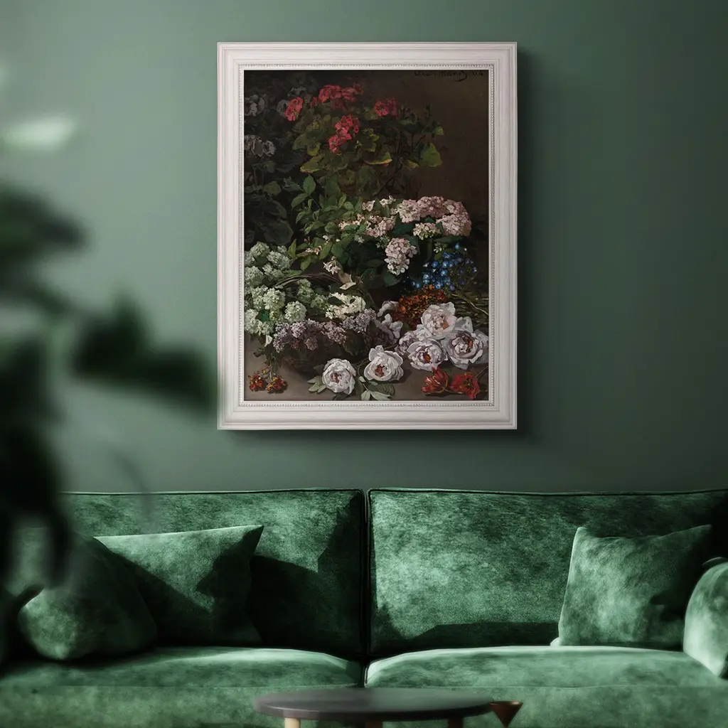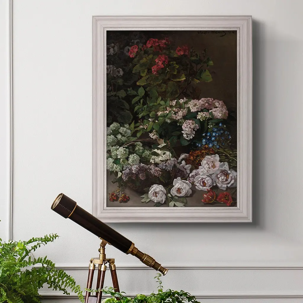 Galeria Plakatu Spring Flowers Premium Framed Canvas- Ready to Hang A Premium Framed Canvas created to last. Framed in distressed wood and available in an array of sizes and colors Featuring a beveled a solid wood stretcher bar, each piece comes ready to hand 3 SIZES AVAILABLE 16''X20'' - Overall Size 18'X27'' - Overall Size 24''x36'' - Overall Size Each piece is made to order. Each piece comes with hanging hardware. Made in the USA Ready to Hang Giclee Paper Print Acrylic Glass Beveled Matt Board