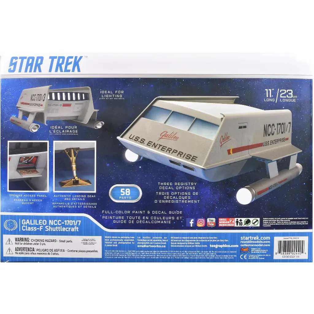 Brand new scale plastic model kit of Galileo Shuttlecraft "Star Trek: The Original Series" (1966-1968) TV Series (Skill 2) 1/32 plastic model kit by Polar Lights. Brand new box. Colorful decal artwork. Opening access panel. Vintage style packaging. Officially licensed product. Includes optional registries. More than 79 detailed parts. Three registry decal options. Ideal for lighting (not included). Authentic landing gear and details. Paint and cement required (not included). Based on the miniature used in the original TV series. Assembled dimensions approximately L-11 inches long.