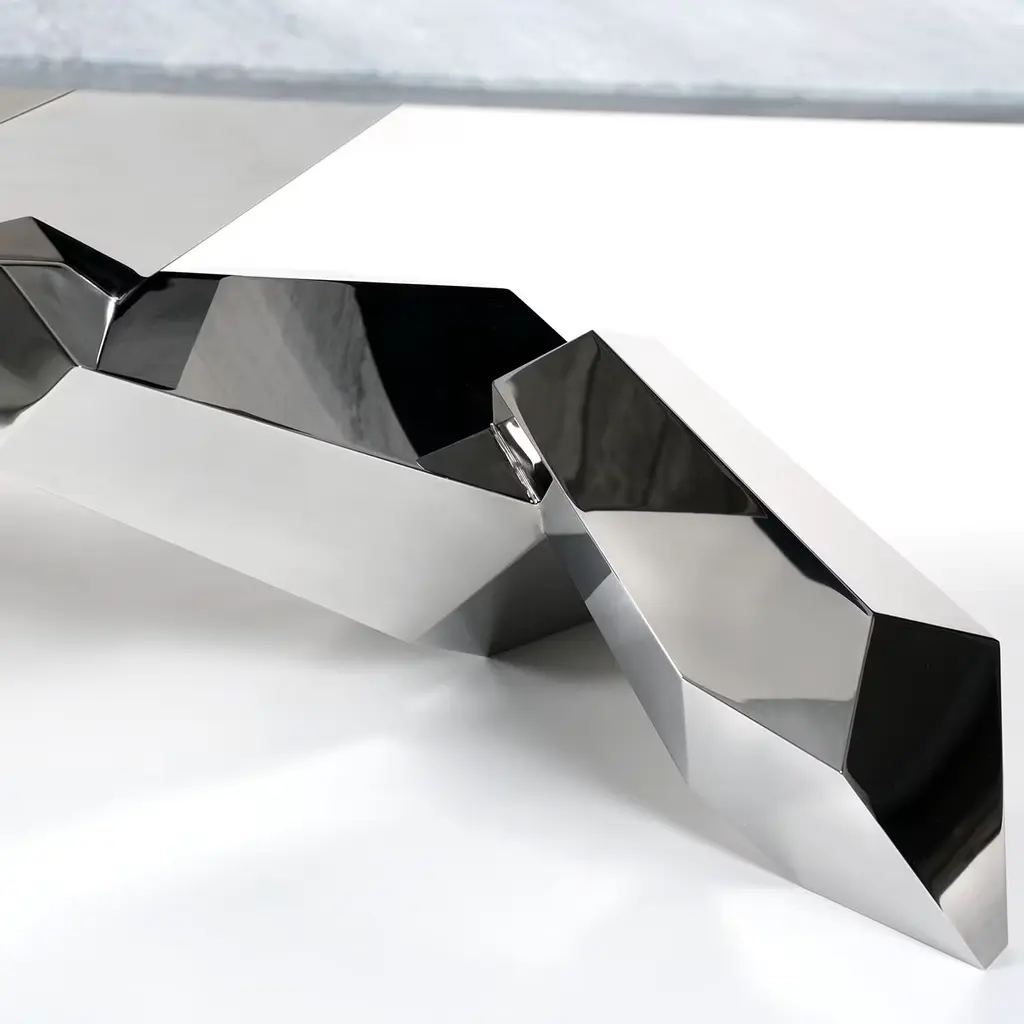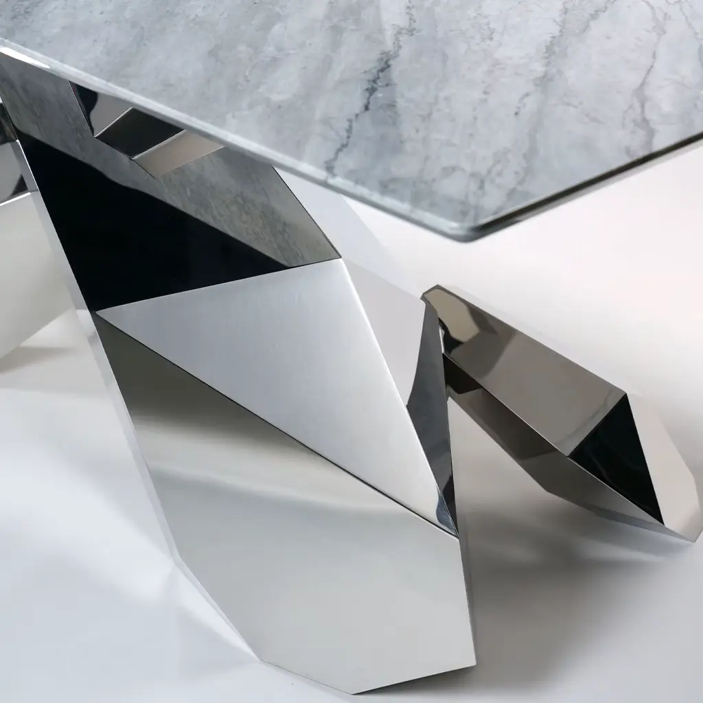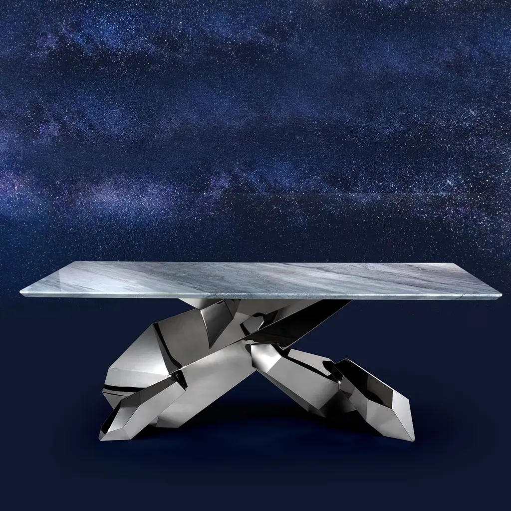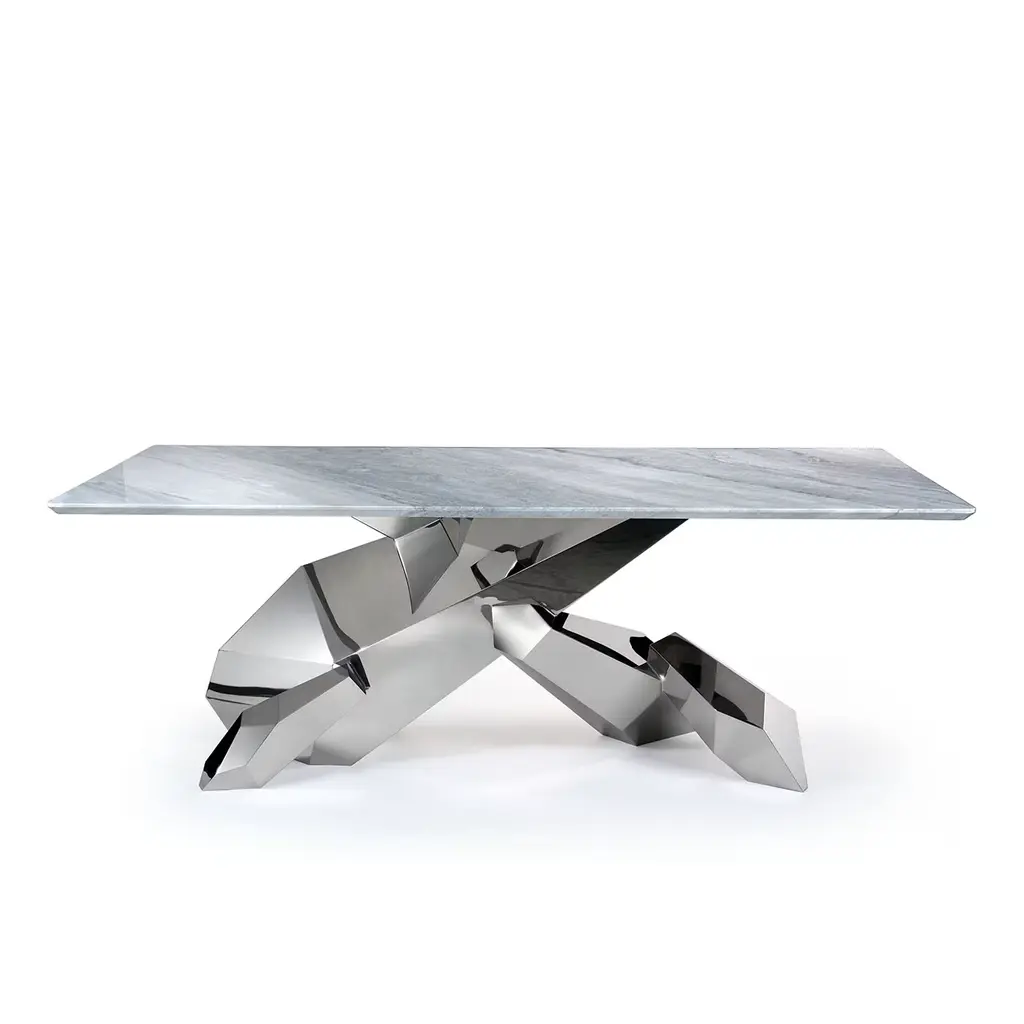 The table Gallio is an important desk with structure in mirror polished stainless steel and top in grey Versylis marble. Dimensions are customizable. Inspired by Gallium, a rare metal, omnipresent in the technology that surrounds us, portrayed in an artwork that preserves its beauty and gives us a taste of the future. Versilys marble, mirror polished stainless steel. Limited Edition of 30. Every single bangle is welded and highly polished by hand. Each table is handsigned and numbered.