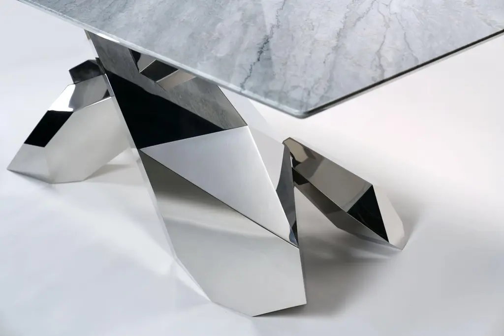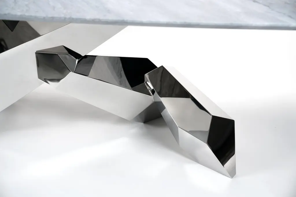 Gallio Desk by Barberini & GunnellLimited Edition of 30Dimensions: D 100 x W 200 x H 74 cm.Materials: Versilys marble, mirror polished stainless steel.We were inspired by Gallium, a rare metal, omnipresent in the technology that surrounds us, with a tenacious appearance but with a fragile soul, magical and changeable when held in the palm of one hand. We have portrayed it in a work that preserves its beauty unaltered and projects us with the imagination toward the future, which perhaps is already present.Limited Edition, signed and numbered by the artists, comes with a Certificate of Authenticity.Barberini & Gunnell, founded in 2009 in Ancona, Italy by architects Francesco Barberini and Nina A. Gunnell, is the result of a philosophy, thinking of design and architecture as a work of art. The architectural and interior design activity carried out by ‘The Studio’ complements the creations of ‘The Atelier’, which are the result of an artistic playground and highly skilled craftsmanship, a place where artworks and sculptures come to life.The Studio Barberini & Gunnell designs high-end residential and retail spaces that are out of the ordinary and beyond fashion. Barberini & Gunnell creates refined, timeless, and harmonious environments by inserting collectible design, “talking pieces” that create unique and bespoke homes according to the client’s eclectic and aesthetic desires.The Atelier Barberini & Gunnell creates artworks and collectible designs, one-off pieces, and limited editions for a small niche of high-end projects; bespoke solutions for luxury and ultra-luxury projects all over the world.The choice of the most precious materials, the maniacal cure for detail is the basis of our modus operandi aiming to create timeless pieces, using marine grade stainless steel, brass, cast bronze, precious wood essences, marbles, onyxes, semi-precious gemstones, crystal glass, together with the most sophisticated technologies and quality craftsmanship.This allows us to work for clients like Four Seasons Hotels, The Ritz Carlton, Regent Seven Seas Cruises, Louis Vuitton, Cartier, Dior, Paramount Pictures, Peter Marino Architects, Sotheby’s, Bonhams, Foundation of Maestro Andrea Bocelli, Ridley Scott (House of Gucci) besides our private collectors and clients.Values such as sustainability, the use of natural materials, the rediscovery of eco-sustainable craftsmanship, and the protection of refined and ancient techniques that are increasingly being lost are the basis of the design.Barberini & Gunnell’s signature works are exhibited at international art fairs such as Art Basel Design//Miami, Art Miami, Art Basel Switzerland, PAD London, PAD Genève, PAD Paris, PAD Monaco, Salon Art+Design New York…