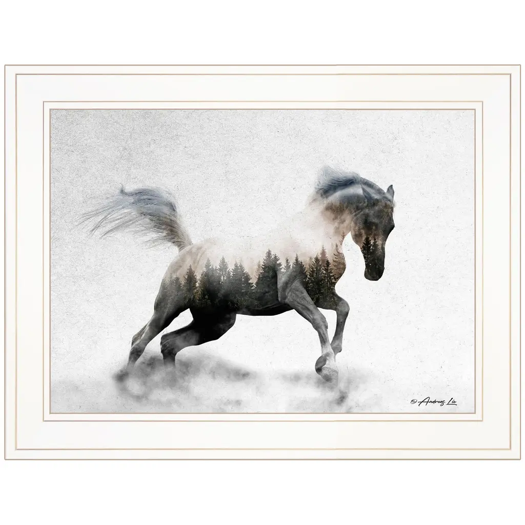 Add an air of fashion to your room and rejuvenate the space with this galloping stallion 1 white framed print wall art. Bring a little bit of the farm indoors when you hang this horse artwork. This print is a visual artistic expression that allows you to decorate your space in style. Reproduced for you on paper, this hanging decorative accent will be a trendy and fashionable way to dress your walls. Adding this hanging wall art to your space to make your room feel more finished and attractive. Utilize this opportunity to create a focal point in the room with this fabulous wall decor option. 15" H x 19" W x 1" D