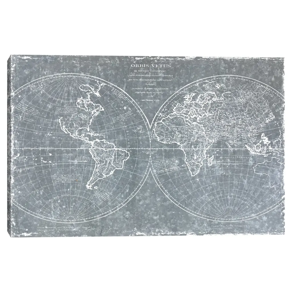 Galvanized World Map By Cad Designs Canvas Art Print - 24x36