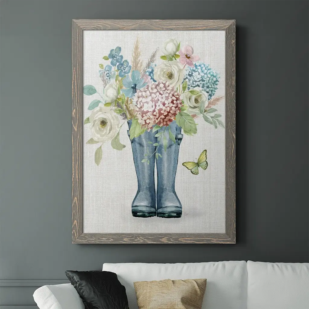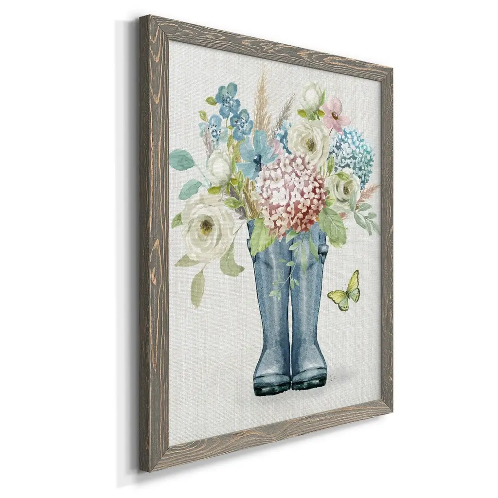 Garden Boots-Premium Framed Canvas - Ready To Hang - 27.5x37.5 - Maple