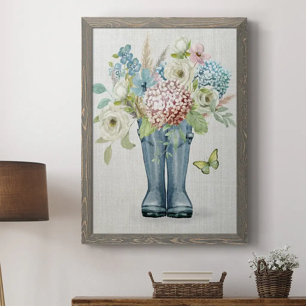Garden Boots-Premium Framed Canvas - Ready To Hang - 27.5x37.5 - White