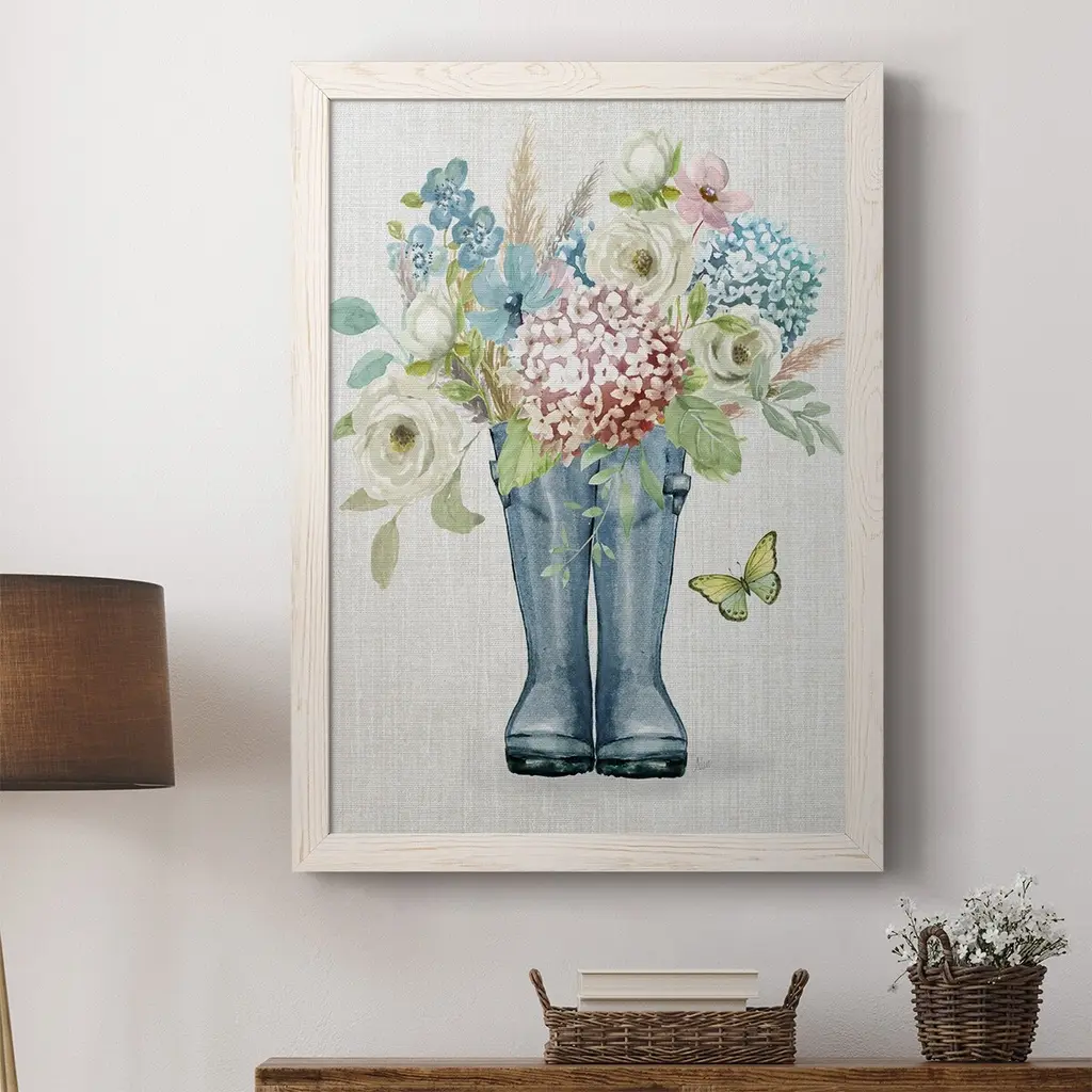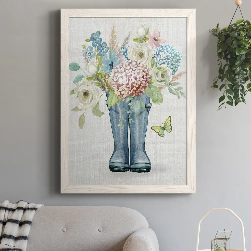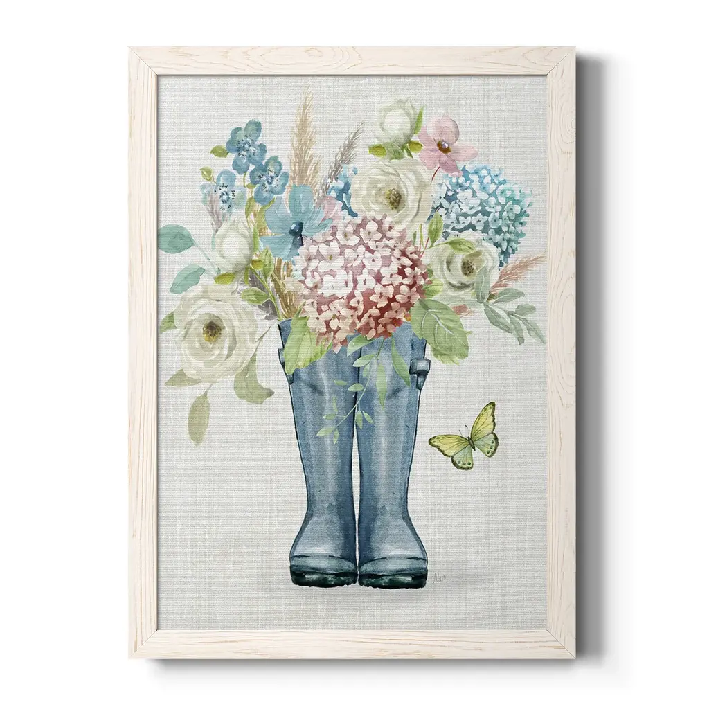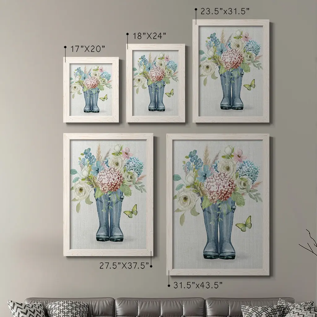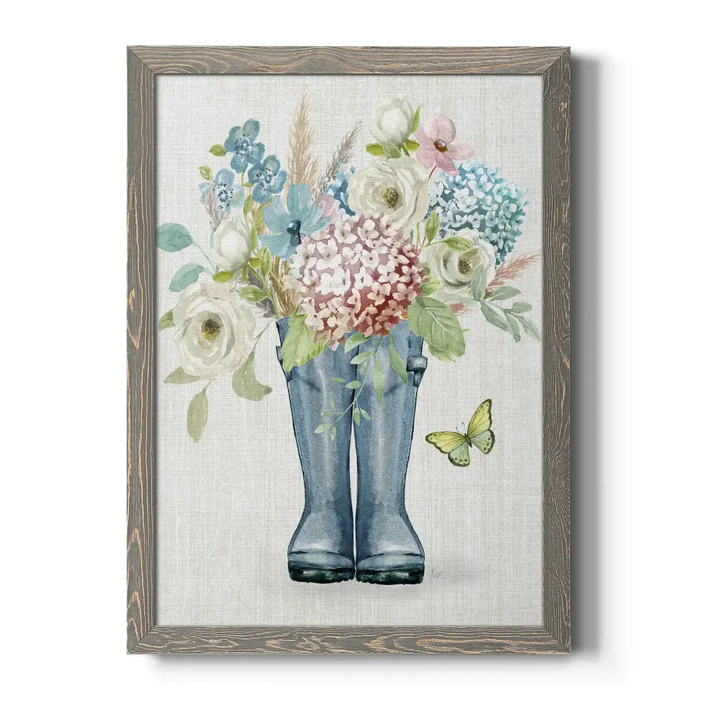Garden Boots-Premium Framed Canvas - Ready To Hang - 31.5x43.5 - Walnut