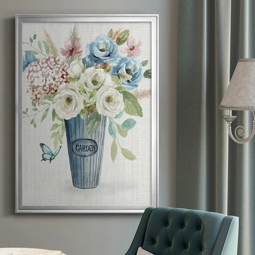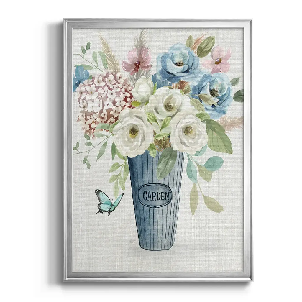 Garden Bouquet Premium Framed Print - Ready to Hang A Premium Framed Print created to last. Framed in distressed wood and available in an array of sizes and colors Featuring a beveled a solid wood stretcher bar, each piece comes ready to hand 4 SIZES AVAILABLE 30.5''X42.5'' - Overall Size 26.5'X36.5'' - Overall Size 22.5''x30.5'' - Overall Size 18.5''x24.5'' - Overall Size Each piece is made to order. Each piece comes with hanging hardware. Made in the USA Ready to Hang