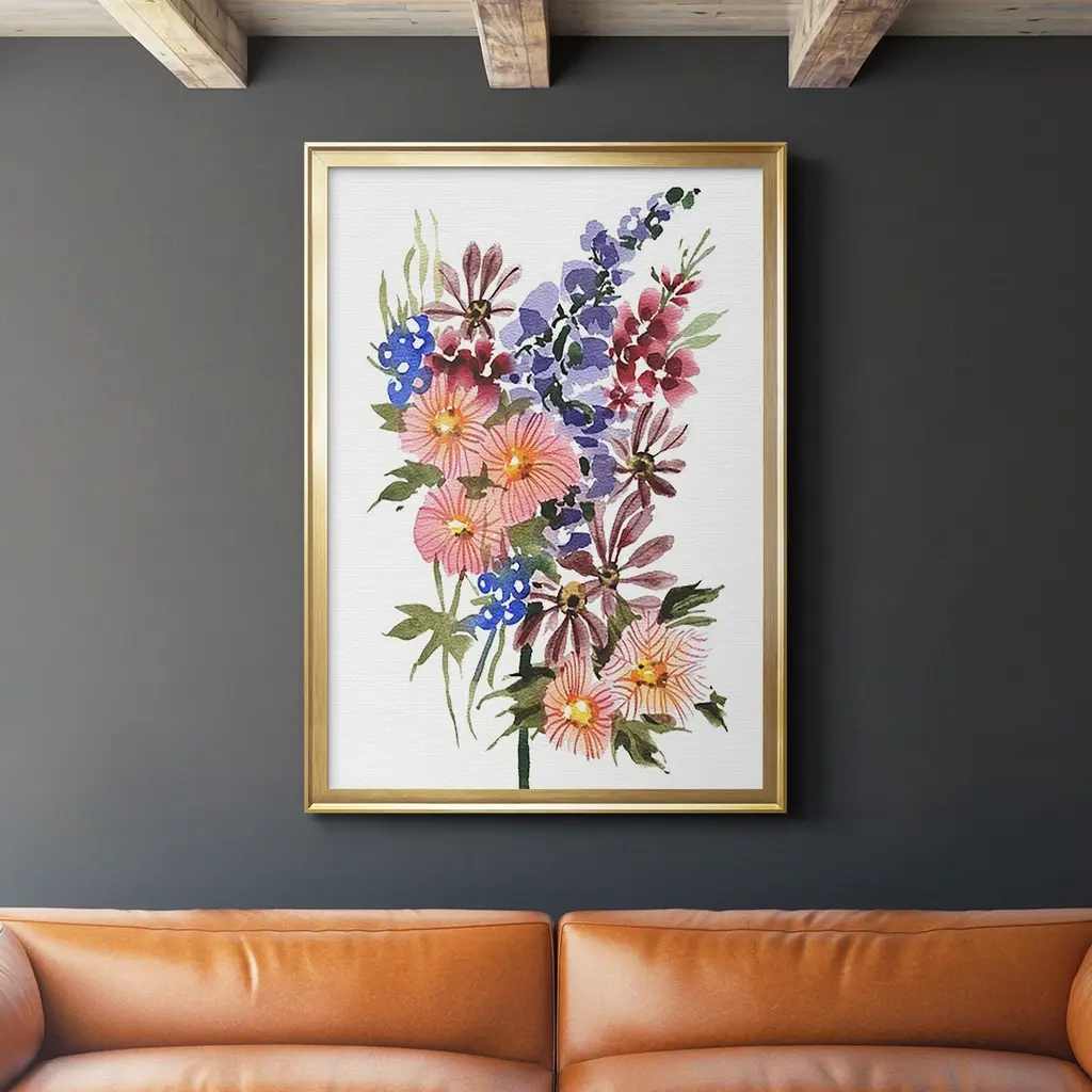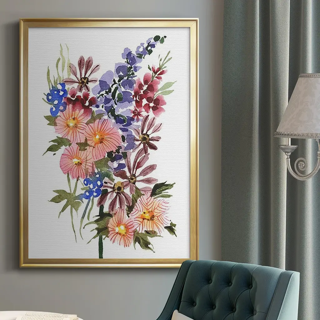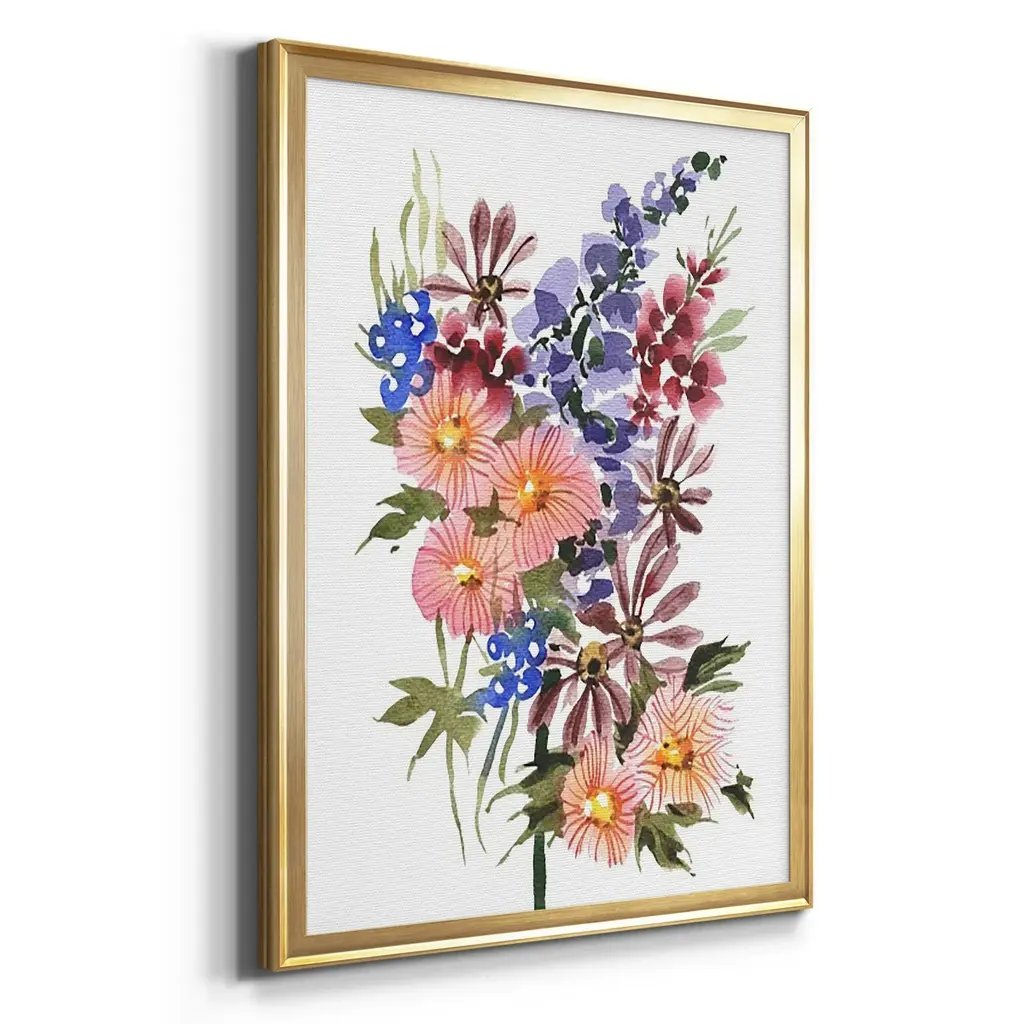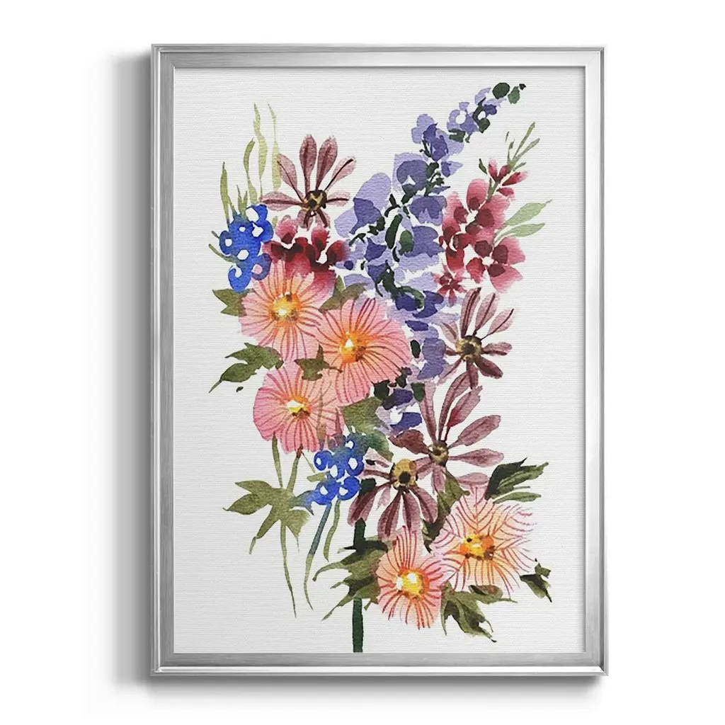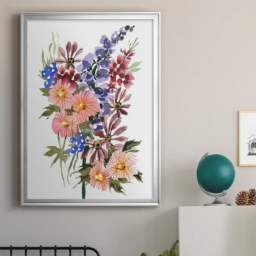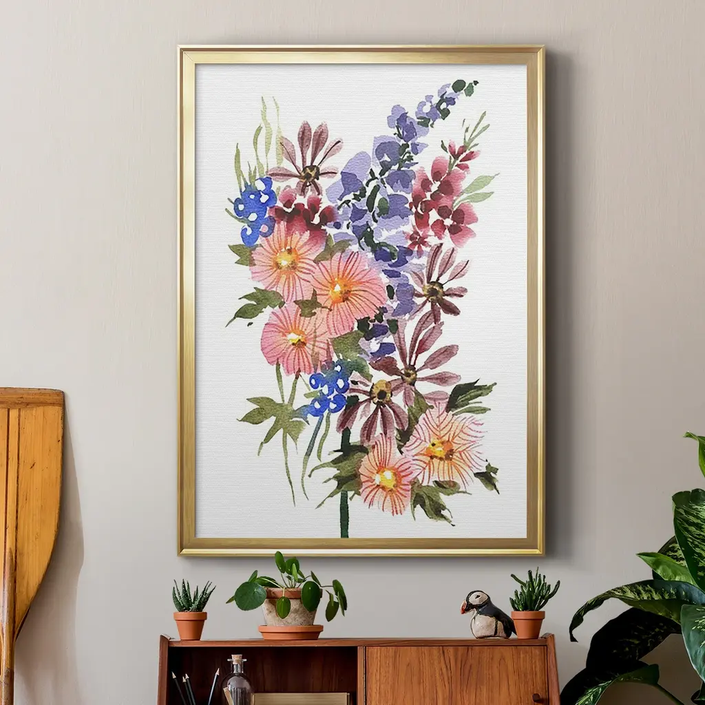 Garden Bouquets III Premium Framed Print - Ready to Hang A Premium Framed Print created to last. Framed in distressed wood and available in an array of sizes and colors Featuring a beveled a solid wood stretcher bar, each piece comes ready to hand 4 SIZES AVAILABLE 30.5''X42.5'' - Overall Size 26.5'X36.5'' - Overall Size 22.5''x30.5'' - Overall Size 18.5''x24.5'' - Overall Size Each piece is made to order. Each piece comes with hanging hardware. Made in the USA Ready to Hang