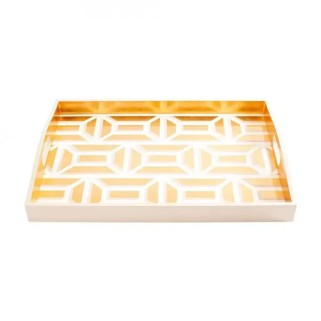 Garden Gate White/gold Lacquer Large Rectangular Tray 15" X 21"