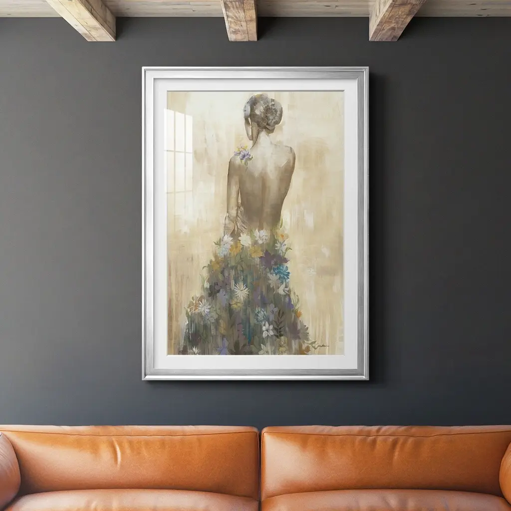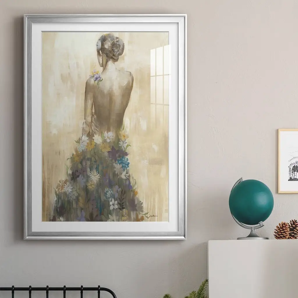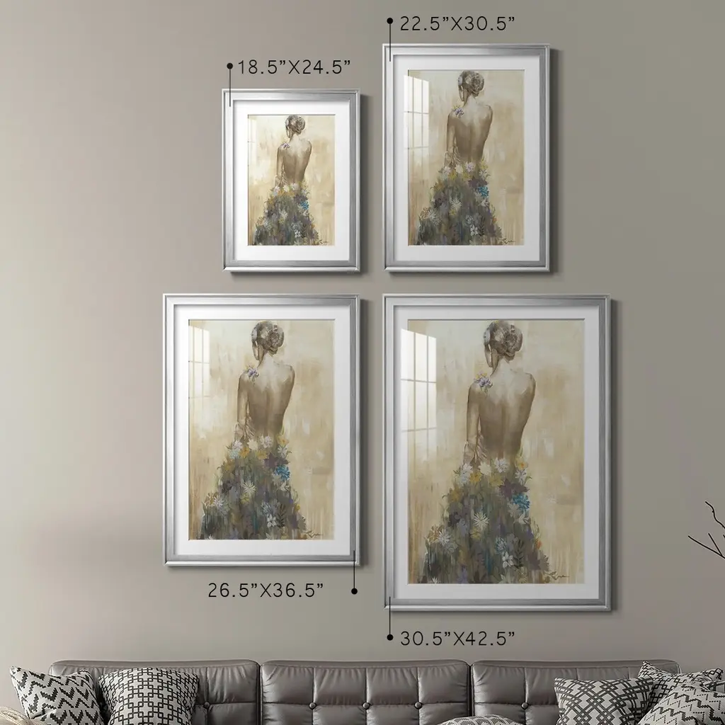 Garden Gown Premium Framed Print - Ready to Hang A Premium Framed Print created to last. Framed in distressed wood and available in an array of sizes and colors Featuring a beveled a solid wood stretcher bar, each piece comes ready to hand 4 SIZES AVAILABLE 30.5''X42.5'' - Overall Size 26.5'X36.5'' - Overall Size 22.5''x30.5'' - Overall Size 18.5''x24.5'' - Overall Size Each piece is made to order. Each piece comes with hanging hardware. Made in the USA Ready to Hang Giclee Paper Print Acrylic Glass Beveled Matt Board