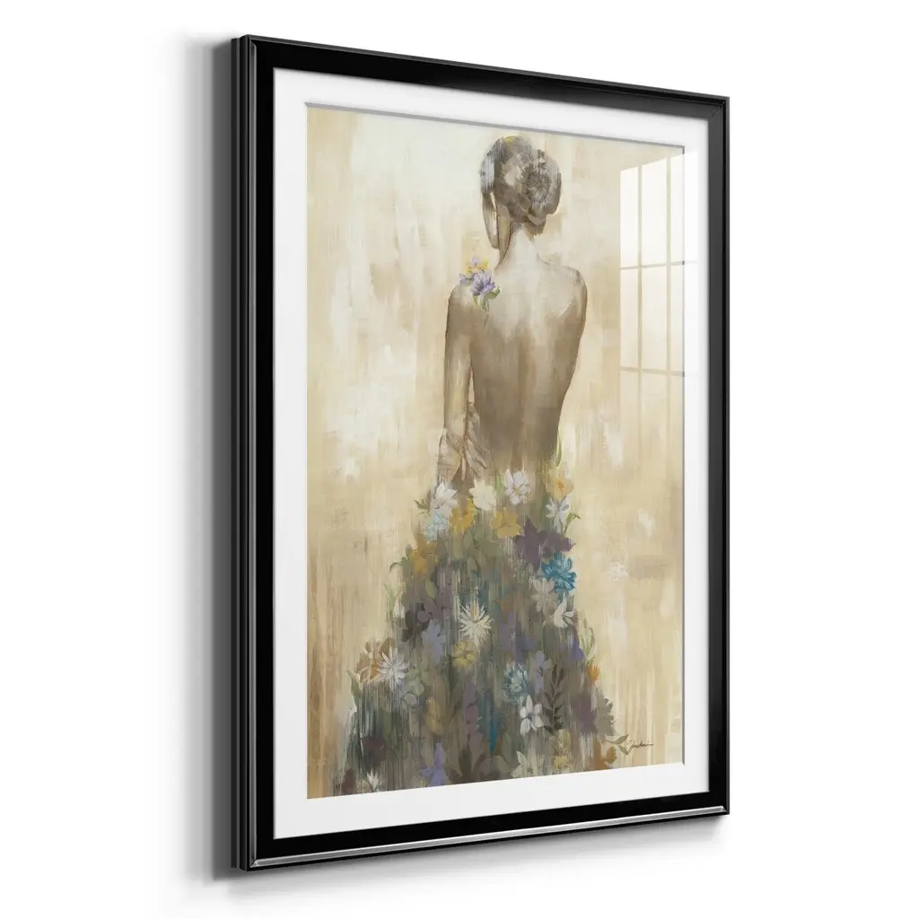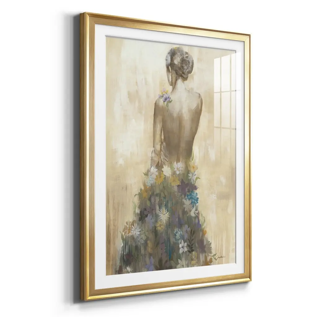 Garden Gown Premium Framed Print - Ready to Hang A Premium Framed Print created to last. Framed in distressed wood and available in an array of sizes and colors Featuring a beveled a solid wood stretcher bar, each piece comes ready to hand 4 SIZES AVAILABLE 30.5''X42.5'' - Overall Size 26.5'X36.5'' - Overall Size 22.5''x30.5'' - Overall Size 18.5''x24.5'' - Overall Size Each piece is made to order. Each piece comes with hanging hardware. Made in the USA Ready to Hang Giclee Paper Print Acrylic Glass Beveled Matt Board