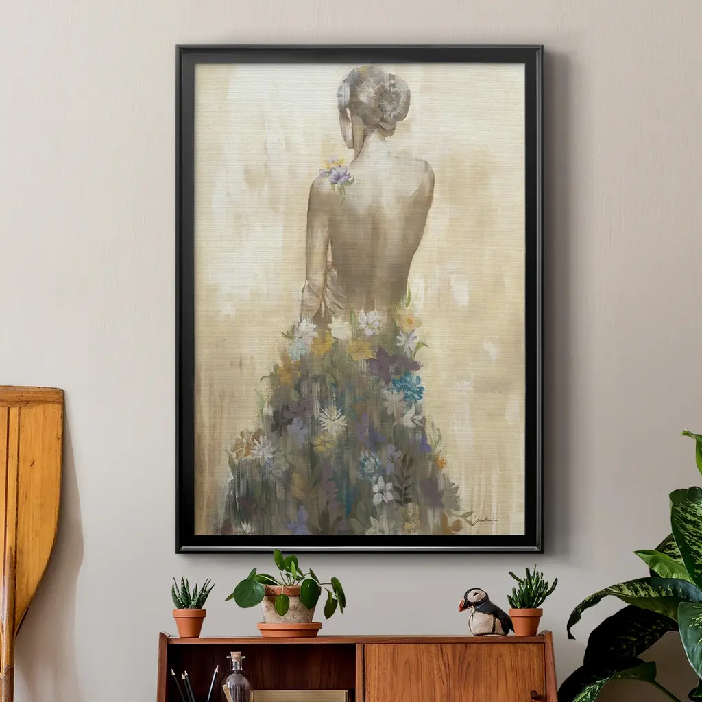 Garden Gown Premium Framed Print - Ready to Hang A Premium Framed Print created to last. Framed in distressed wood and available in an array of sizes and colors Featuring a beveled a solid wood stretcher bar, each piece comes ready to hand 4 SIZES AVAILABLE 30.5''X42.5'' - Overall Size 26.5'X36.5'' - Overall Size 22.5''x30.5'' - Overall Size 18.5''x24.5'' - Overall Size Each piece is made to order. Each piece comes with hanging hardware. Made in the USA Ready to Hang