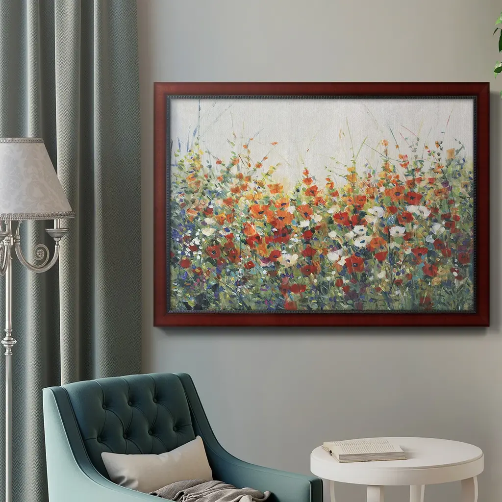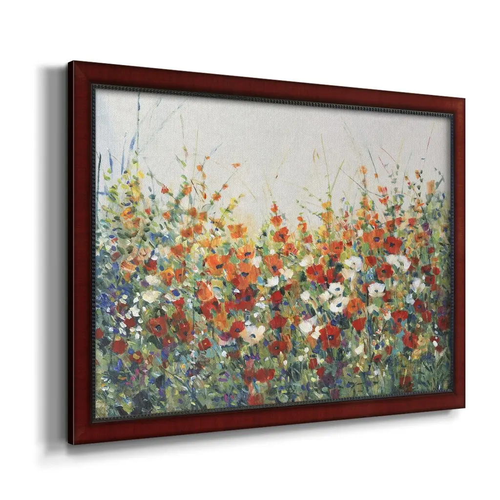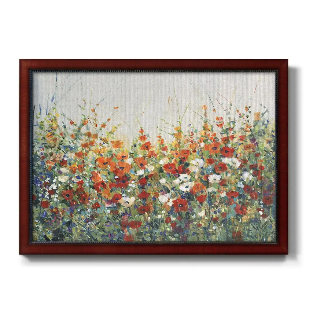 Garden in Bloom I Premium Framed Canvas- Ready to Hang A Premium Framed Canvas created to last. Framed in distressed wood and available in an array of sizes and colors Featuring a beveled a solid wood stretcher bar, each piece comes ready to hand 3 SIZES AVAILABLE 16''X20'' - Overall Size 18'X27'' - Overall Size 24''x36'' - Overall Size Each piece is made to order. Each piece comes with hanging hardware. Made in the USA Ready to Hang Giclee Paper Print Acrylic Glass Beveled Matt Board