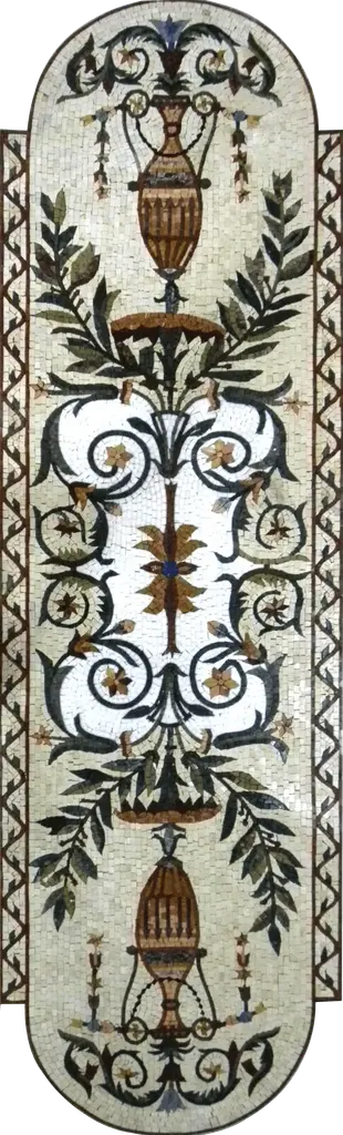Introducing the stunning Garden Mosaic Artwork - Estee, a timeless piece designed to elevate your outdoor or indoor spaces. This captivating artwork features an intricate urn and botanical motif, inspired by the rich aesthetics of antique Persian rugs. With its vibrant colors and detailed craftsmanship, the Garden Mosaic Artwork - Estee is not just an art piece; it’s a statement that invites admiration and sparks conversation among guests.Handcrafted with care, this mosaic scene showcases a unique shape that adds depth and character to your decor. Whether displayed on your wall or used as an eye-catching flooring accent, the Garden Mosaic Artwork - Estee is sure to create an instant impact in any setting. Each piece is designed with meticulous attention to detail, ensuring that it stands out as a showpiece in your home or garden.Bring the essence of nature indoors while incorporating a piece of art that resonates with elegance and sophistication. The Garden Mosaic Artwork - Estee goes beyond mere decoration; it's a celebration of artistry and nature that transforms your space into a vibrant oasis. Perfect for garden enthusiasts or anyone looking to enhance their home decor, this mosaic artwork is a must-have for those who appreciate unique and beautiful design. Experience the charm and beauty of the Garden Mosaic Artwork - Estee and let it inspire your living environment.