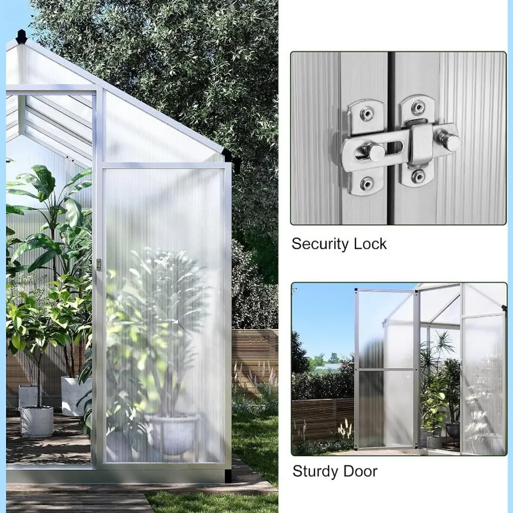 Garden Nest 10x6.25ft Walk-in Outdoor Greenhouse With Roof Vent, Water Gutter, And Twin-wall Panels, Aluminum Framing, Sliver