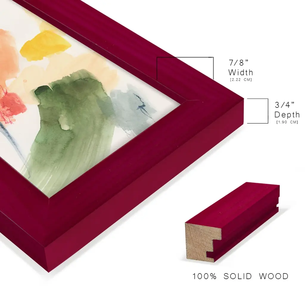 Garden Palette II -EZ SWITCH Framed Print w/glass-Cherry Red A delightful, framed print. Featuring a solid wood frame with real wood glass. This premium print is giclee quality. In addition, every frame features a removable back and table top stand. This allows you to change your art in the future or to just stand the art on a table for a new look. We are sure you'll enjoy our new series of EZ SWITCH Framed Art. Solid Wood Frame Real Glass Removable / Replaceable Art Built in Tabletop Stand Sizes range from 4x6 up to 12x15 - buy just one or pair them up as sets as you see fit.