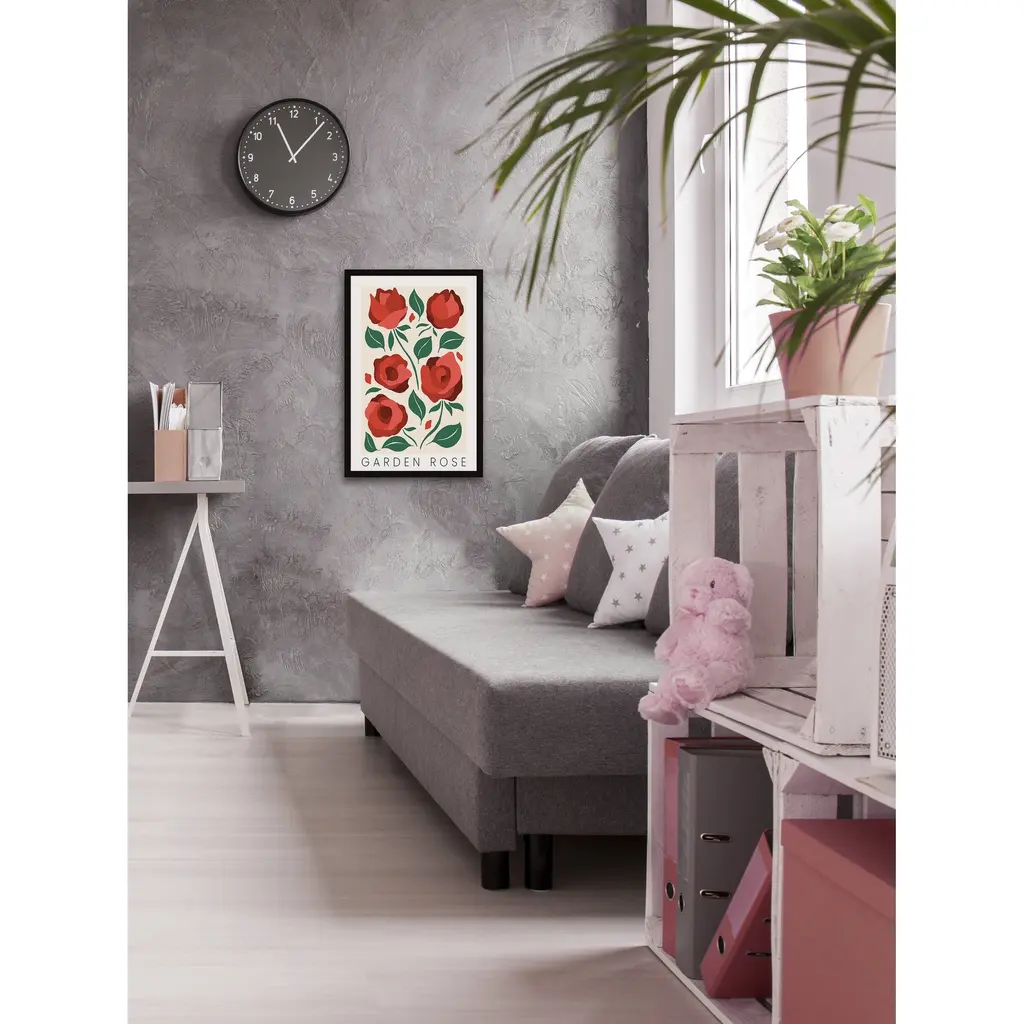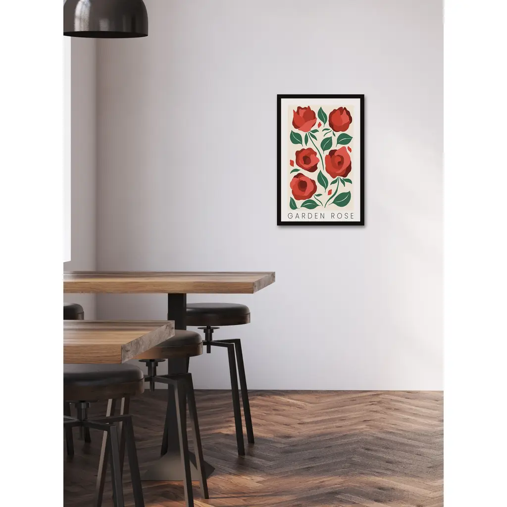 This drawing print features various deep red garden roses that will look stunning on any wall in your home. Proudly printed in the USA, this piece is printed on high quality archive paper and professionally hand-framed. With wall-mounting hooks included, this artful accent is ready to hang up as soon as it reaches your front door. • Top quality Giclee print on high resolution Archive Paper • Professionally framed and mounted • High quality durable non-warping frame • Finished under shatter resistant plexiglass • Arrives ready to hang • Includes a certificate of authenticity • Printed in the USA