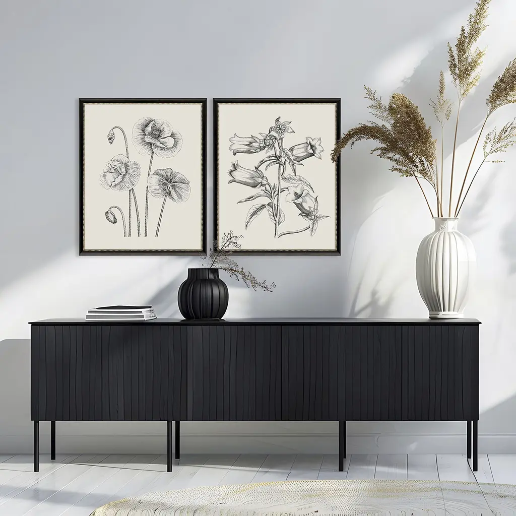Garden Sketch Black And Beige And Neutral And White Framed Art