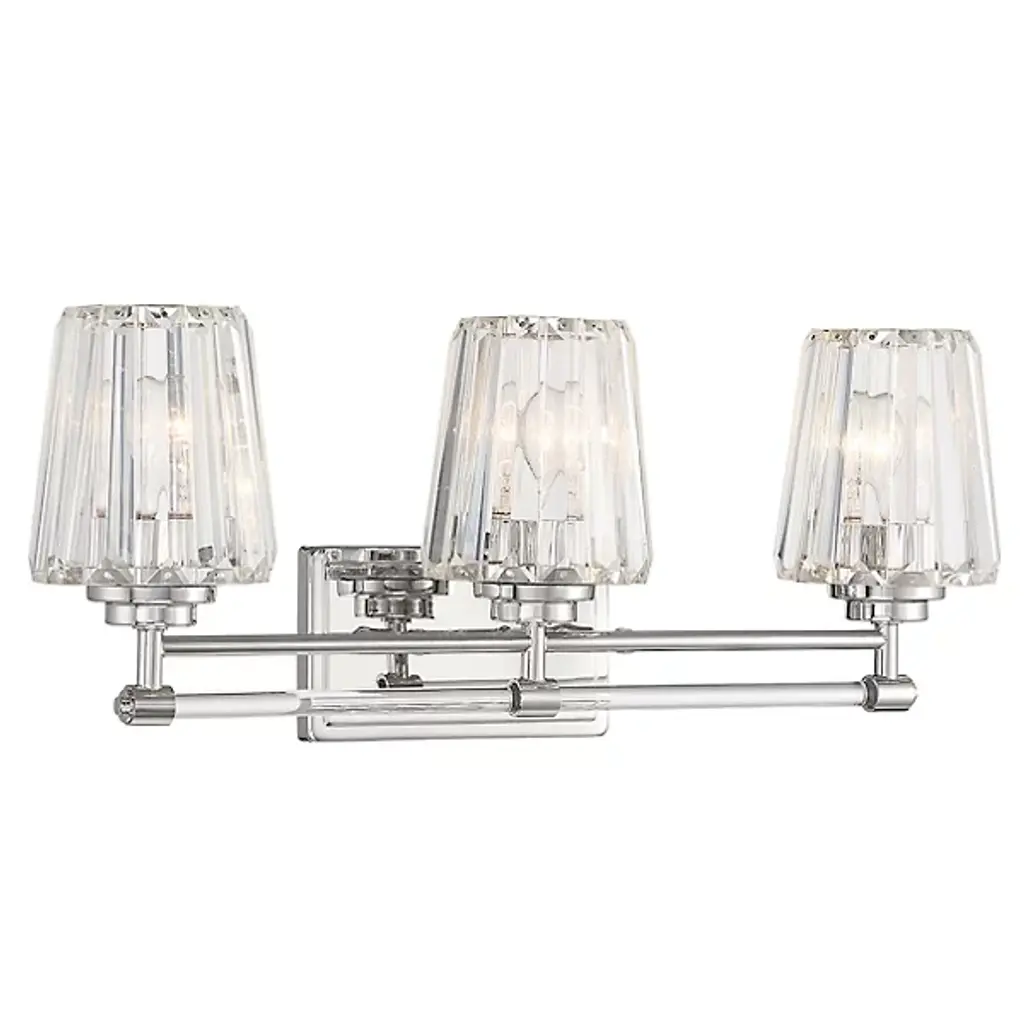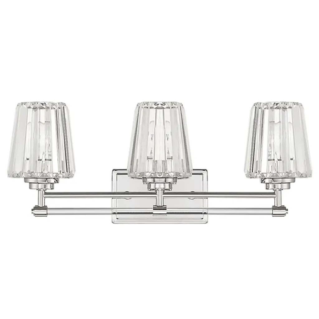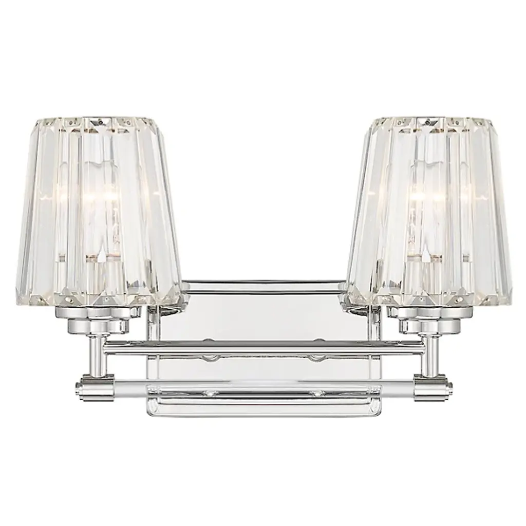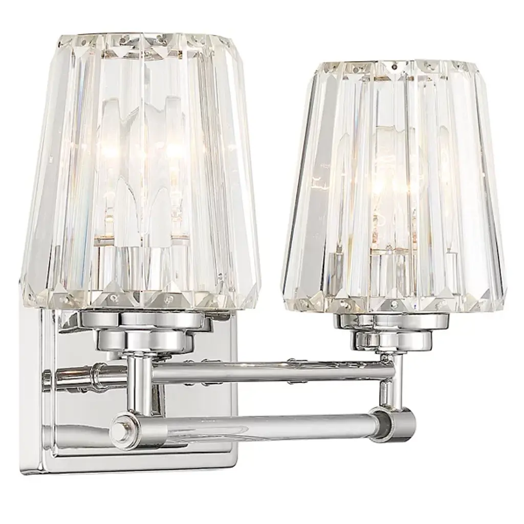 Illuminate your bathroom in a retro, glamorous style with the Garnet Vanity Light. Featuring a metal frame with a smooth chrome finish, this light fixture is accented by cone-shaped faceted crystal bar shades that surround its bulbs to emit a glittering glow. The crystal slats and tubular crystal crossbar add shimmering elegance, while the damp-listed rating allows this vanity light to enhance any indoor space, elevating it with transitional flair and vibrant sparkle.