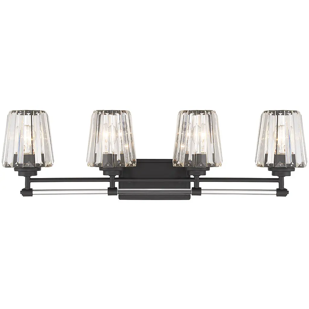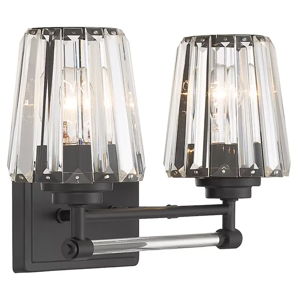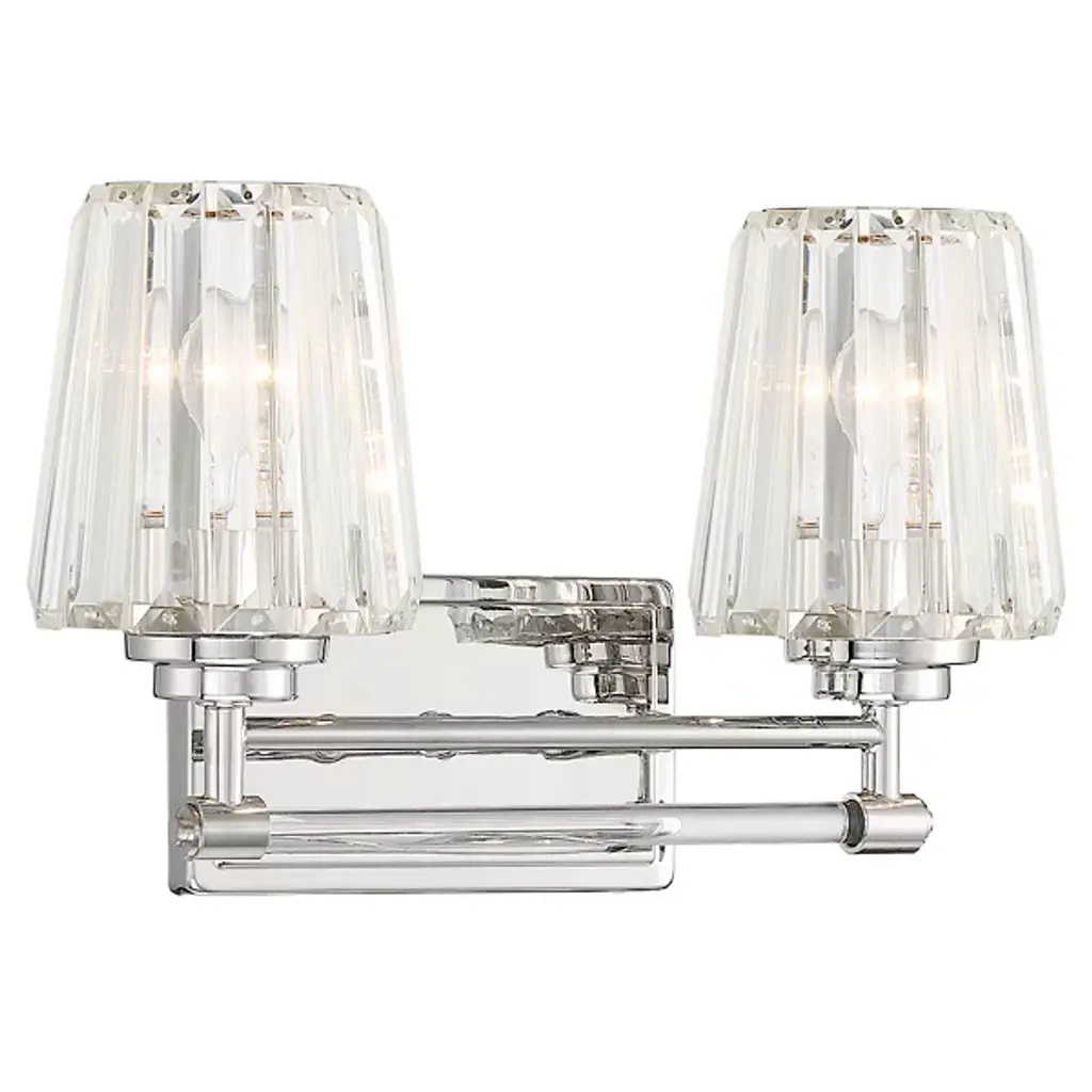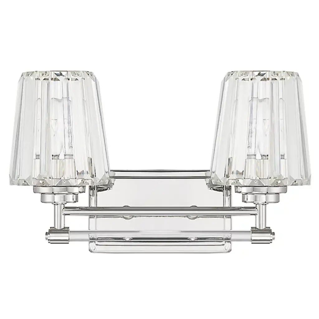 Illuminate your bathroom in a retro, glamorous style with the Garnet Vanity Light. Featuring a metal frame with a smooth chrome finish, this light fixture is accented by cone-shaped faceted crystal bar shades that surround its bulbs to emit a glittering glow. The crystal slats and tubular crystal crossbar add shimmering elegance, while the damp-listed rating allows this vanity light to enhance any indoor space, elevating it with transitional flair and vibrant sparkle.