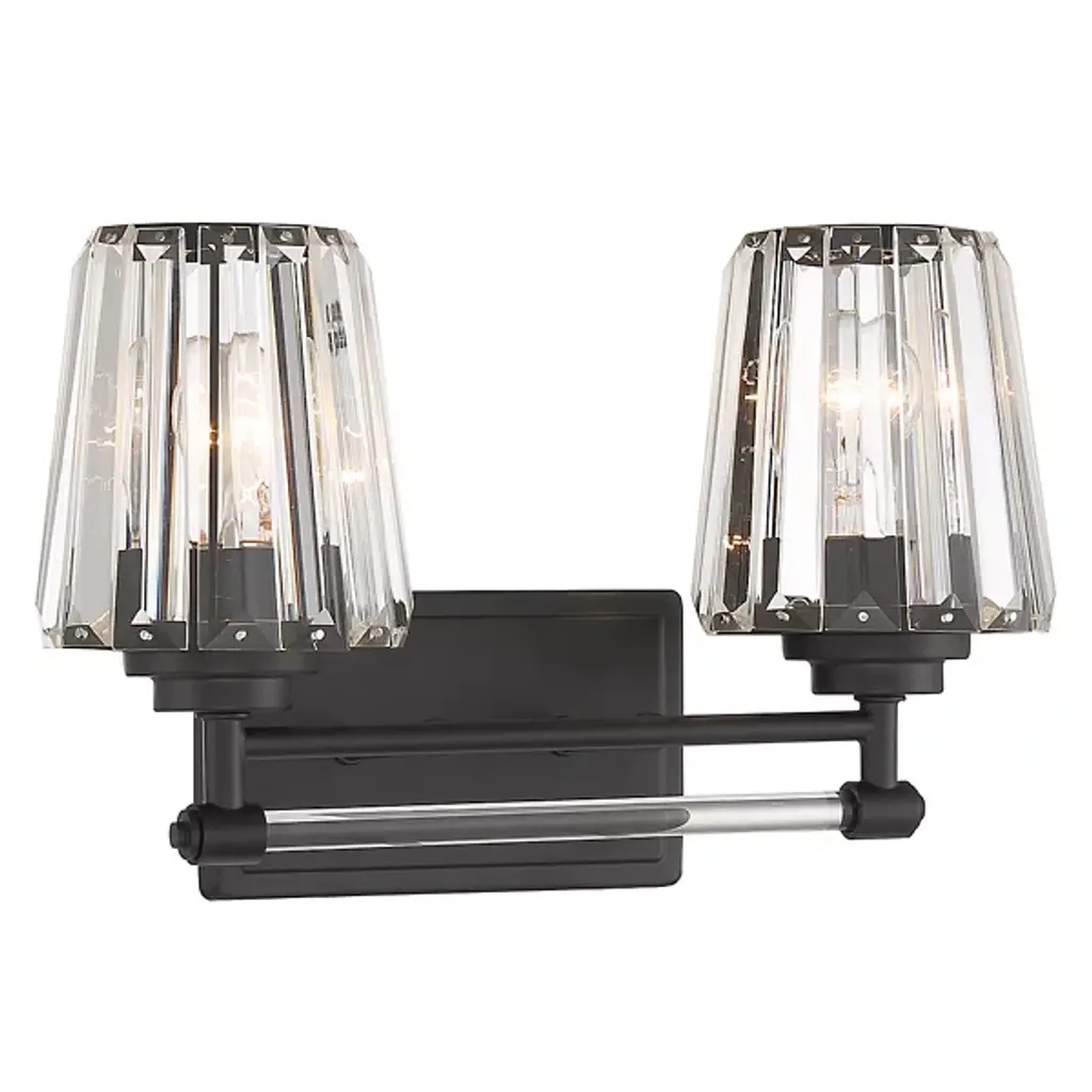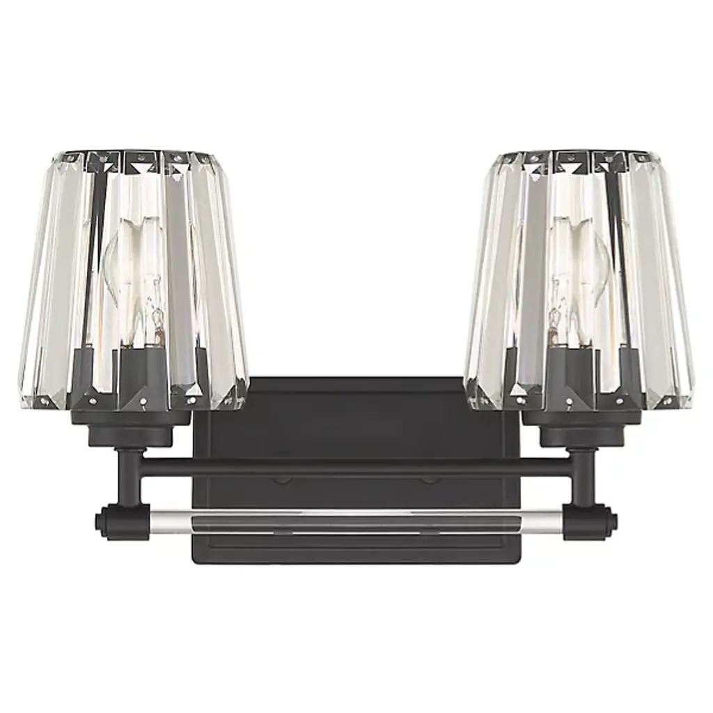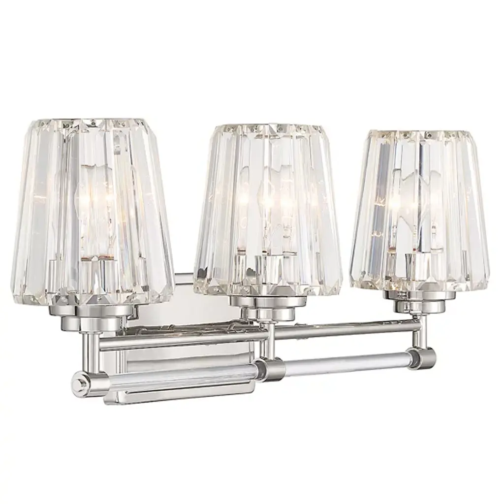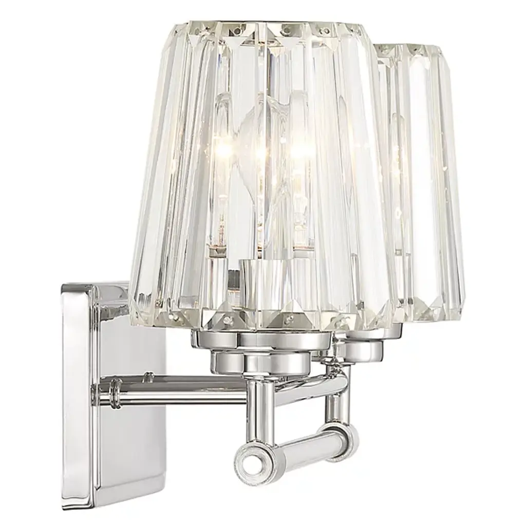 Illuminate your bathroom in a retro, glamorous style with the Garnet Vanity Light. Featuring a metal frame with a smooth chrome finish, this light fixture is accented by cone-shaped faceted crystal bar shades that surround its bulbs to emit a glittering glow. The crystal slats and tubular crystal crossbar add shimmering elegance, while the damp-listed rating allows this vanity light to enhance any indoor space, elevating it with transitional flair and vibrant sparkle.