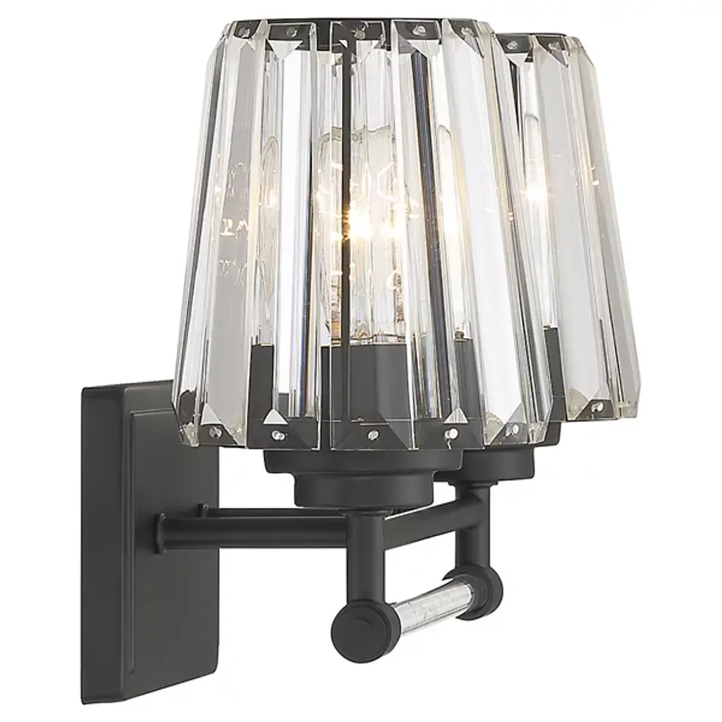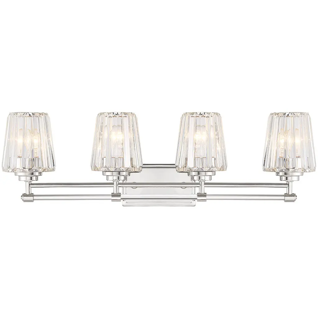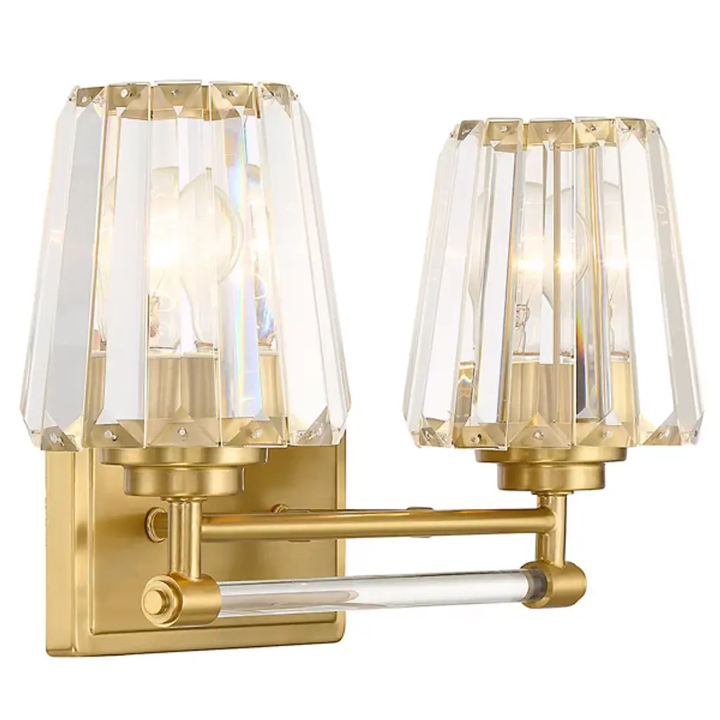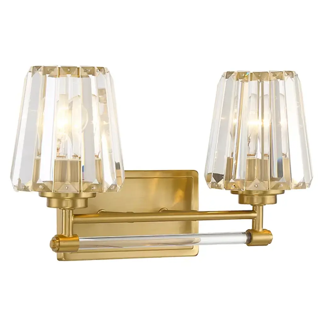 Illuminate your bathroom in a retro, glamorous style with the Garnet Vanity Light. Featuring a metal frame with a smooth chrome finish, this light fixture is accented by cone-shaped faceted crystal bar shades that surround its bulbs to emit a glittering glow. The crystal slats and tubular crystal crossbar add shimmering elegance, while the damp-listed rating allows this vanity light to enhance any indoor space, elevating it with transitional flair and vibrant sparkle.