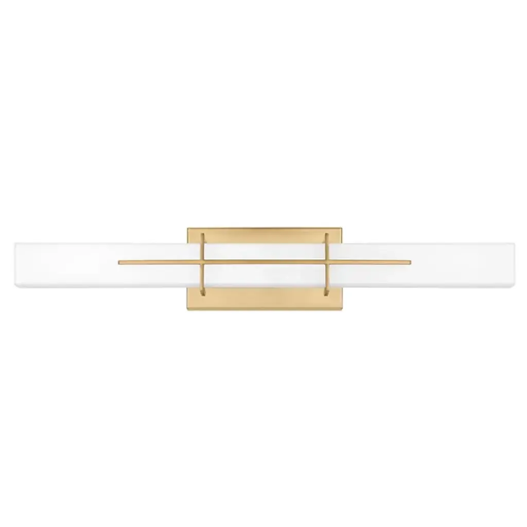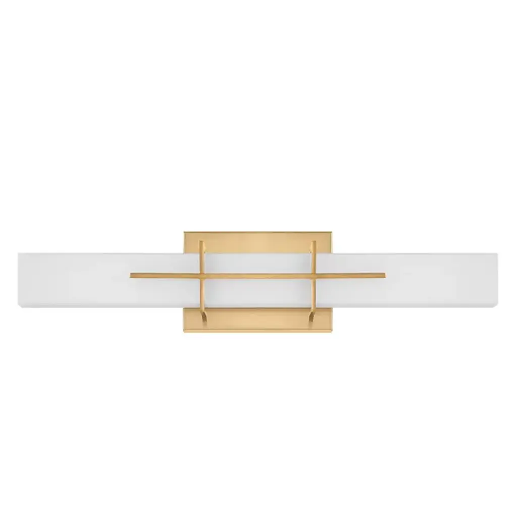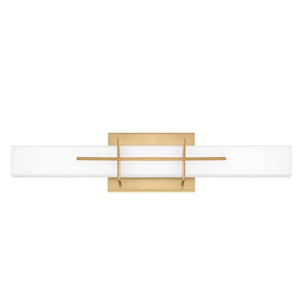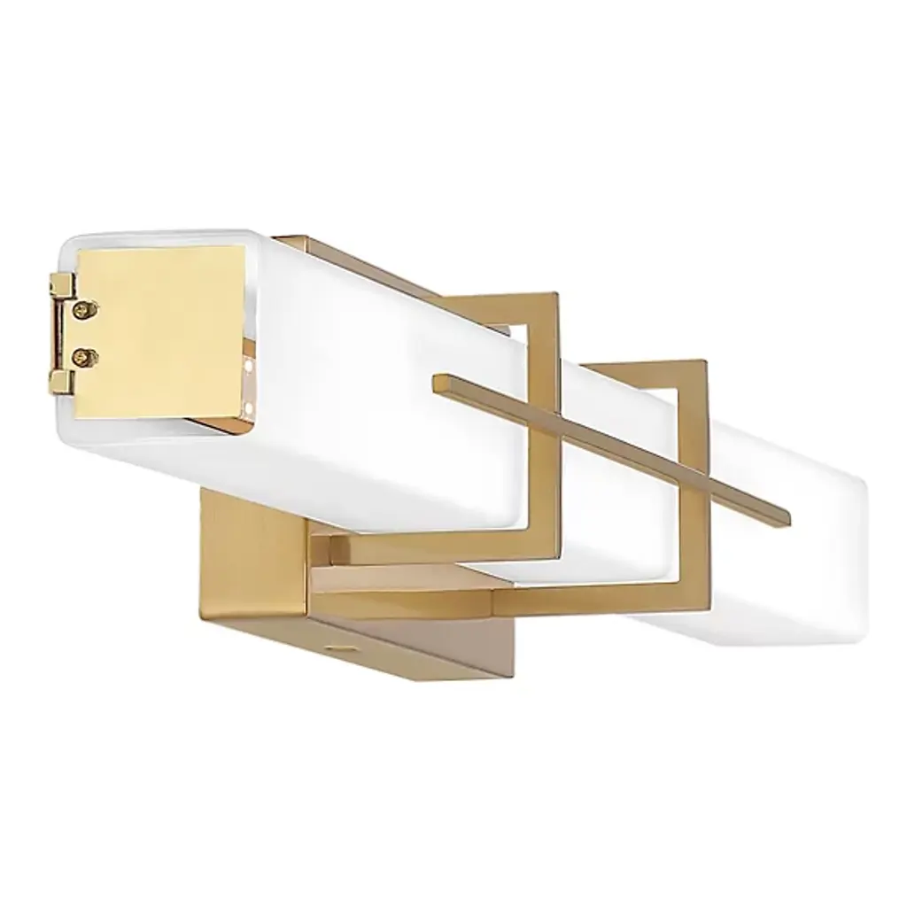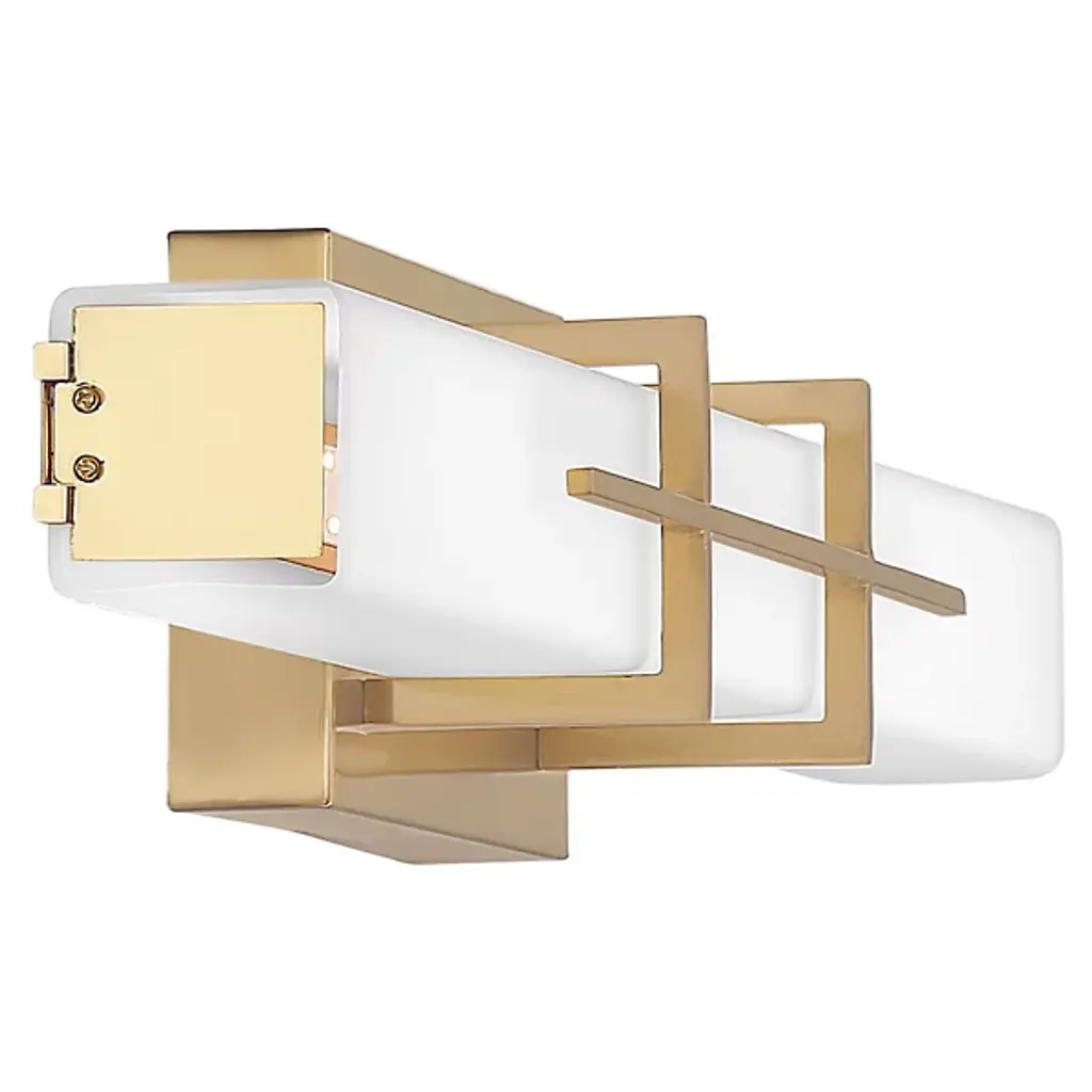 The Gaspare LED Vanity Light by Huxe is a modern and refined piece with a minimalistic sense of style. A wide, smooth, opal etched glass shade is held by thin, angular arms that wrap around its rectangular form. A beautifully finished backplate and simple, minimal endcaps keep this design cohesive as a slender crossbar dresses up the front of this vanity light, filtering a lovely, even, and welcoming layer of light to brighten master and guest bathrooms.