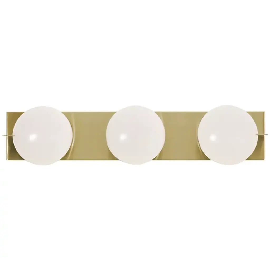 Architectural bathroom lighting design with a soft side. The Gates LED Vanity Light by AFX Lighting pairs a strong, rectangular steel wall plate with round acrylic shades. Behind each shade, integrated LEDs remain hidden until the fixture is turned on. Then, the shades evenly diffuse a bright, all-around glow. This vanity light can be installed vertically on either side of a mirror or horizontally above it to meet your specific vanity lighting needs.